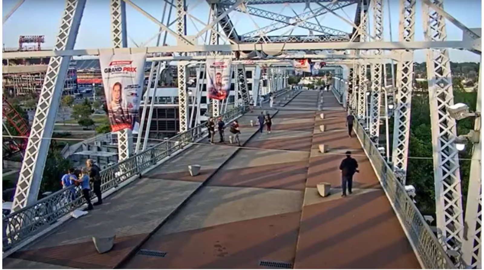 بر اساس ویدیویی که پلیس نشویل از یکی از دوربین‌های مداربسته مشرف به این پل منتشر کرده است بون جوی و فرد دیگری به سمت این زن می‌روند که روی لبه پل نشسته بود و با او صحبت می‌کنند.