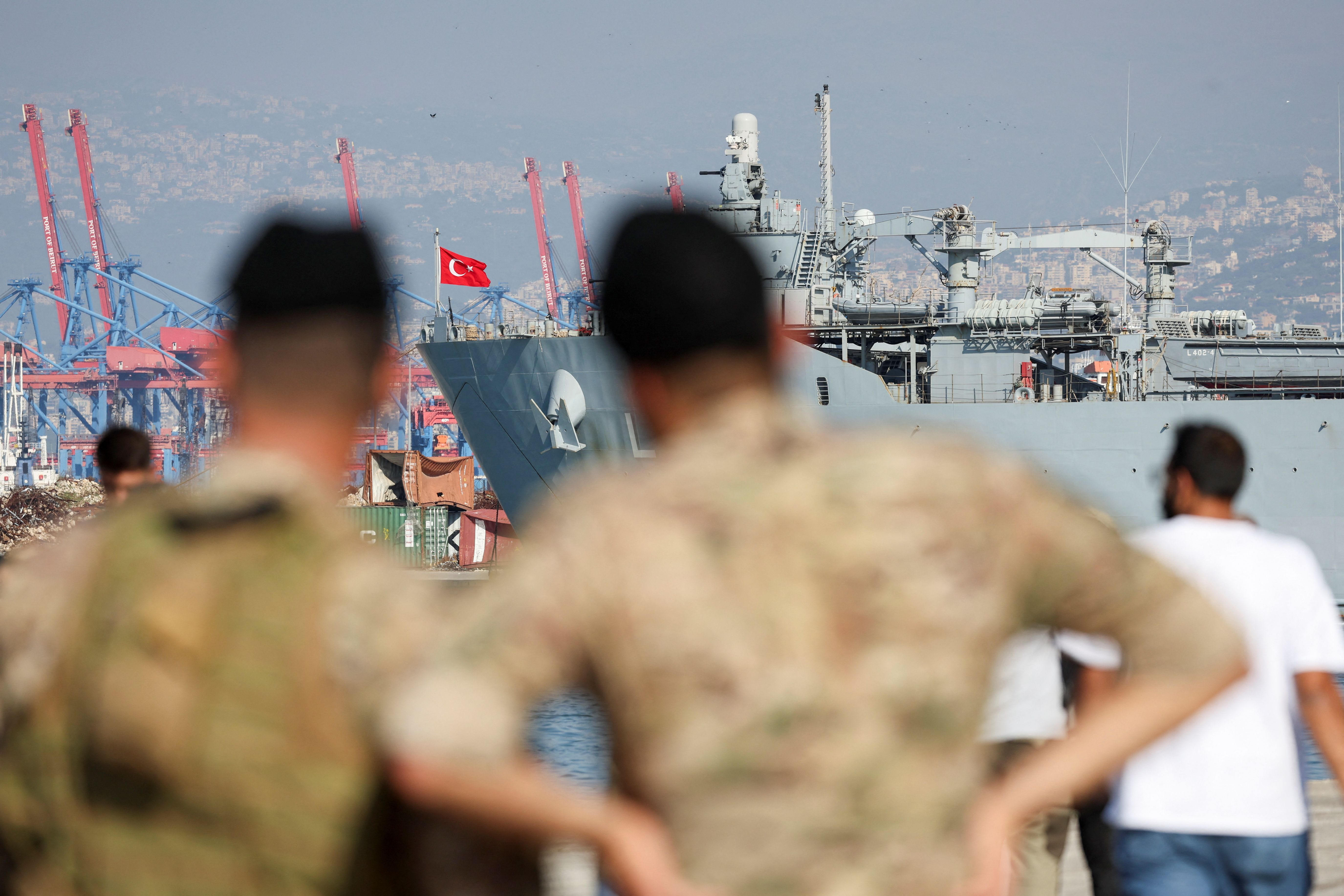 کشتیهای ترکیه ابتدا کمکهای بشردوستانه را در بیروت تخلیه کردند.