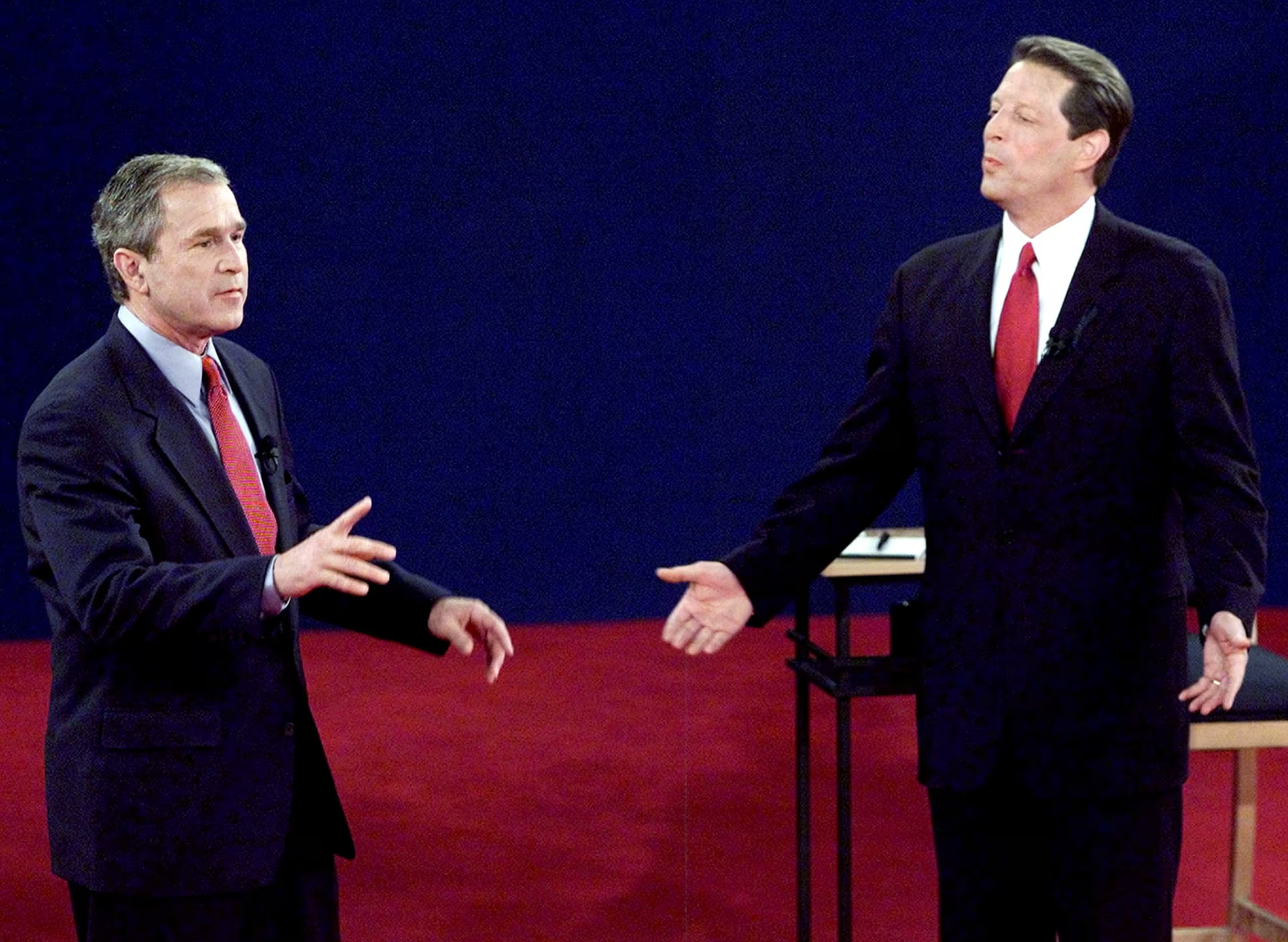 در سال ۲۰۰۰، آل گور که در آن زمان معاون رییس‌جمهور دموکرات بود، با جورج بوش، نامزد حزب جمهوری‌خواه، رقابت می‌کرد. در نظرسنجی‌ها، گور از بوش پیشتاز بود تا اینکه مناظره انتخاباتی برگزار شد.
