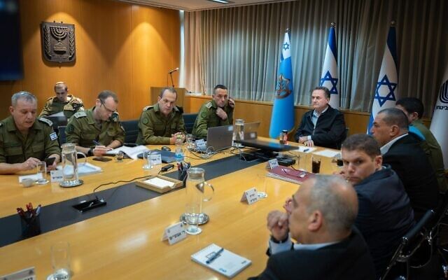 در این جلسه هرتزی هالوی، رییس ستاد کل ارتش اسرائیل و روسای ادارههای عملیات، اطلاعات، استراتژی و شمار دیگری از مقامهای وزارت دفاع حضور دارند.