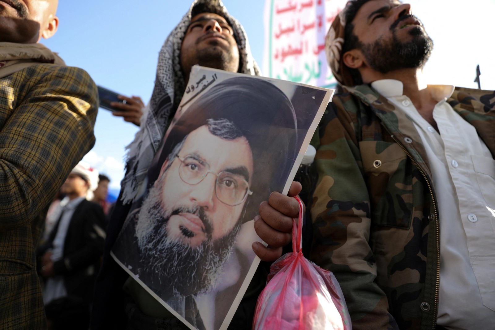 تظاهرات حوثیهای یمن در حمایت از فلسطین و حزبالله لبنان، صنعا، ۹ آذر