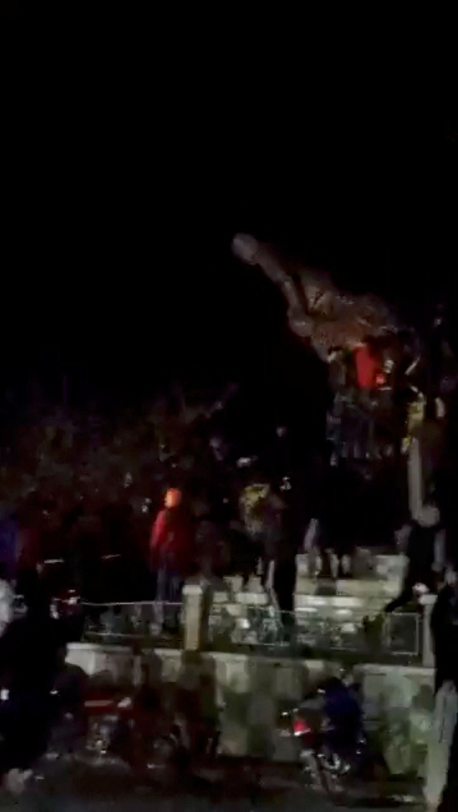 مجسمه حافظ اسد، رییسجمهور پیشین سوریه و پدر بشار اسد، در شهر درعا به دست مخالفان سرنگون شد.