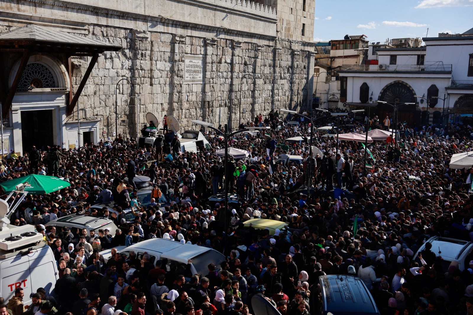 هزاران سوری از جمله زنان و کودکان، پیش از نماز جمعه در مسجد تاریخی امویان دمشق گرد هم آمدند.