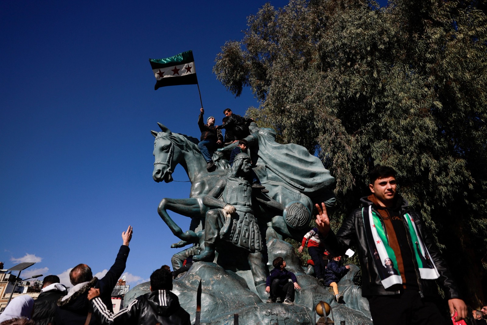 برخی از آنان پرچم استقلال سوریه را برافراشته و شعارهایی سر دادند.