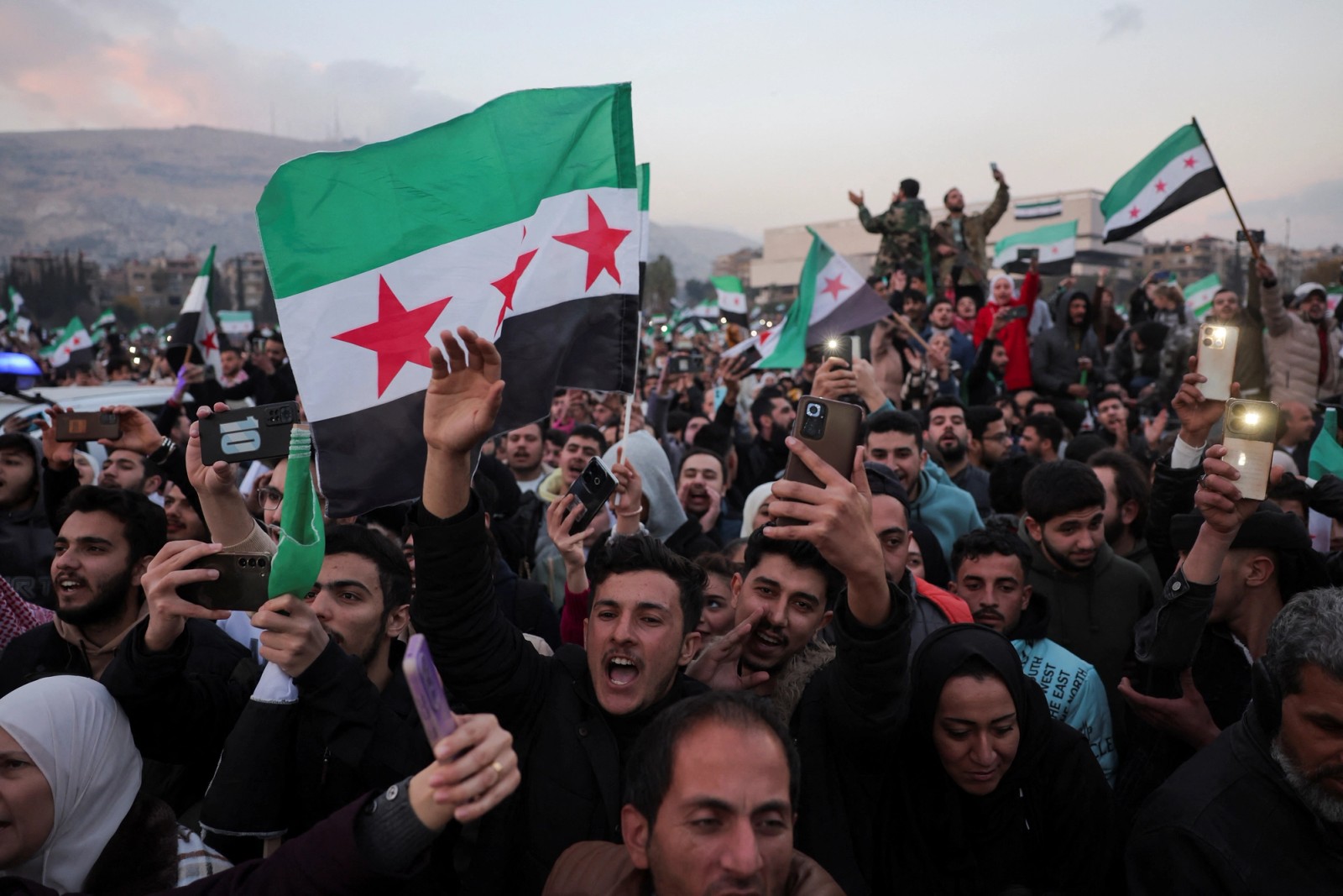 خوشحالی مردم سوریه از سقوط حکومت بشار اسد، دمشق، ۳۰ آذر