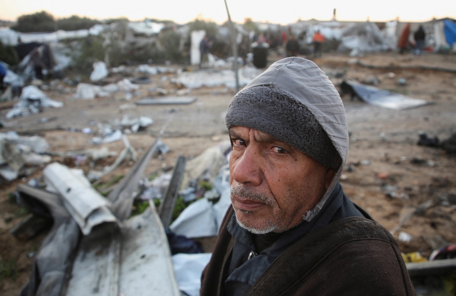 یک فلسطینی در اردوگاه آوارگان، خانیونس در جنوب نوار غزه، ۱۳ دی