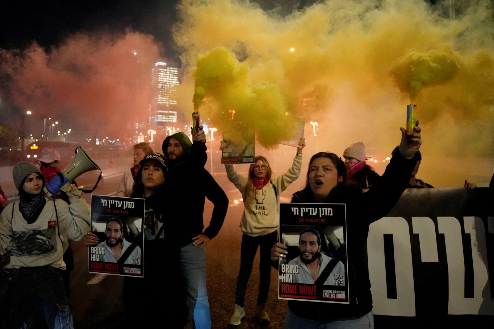 تظاهرات برای آزادی گروگان‌های در بند حماس، تل‌آویو، ۱۲ دی