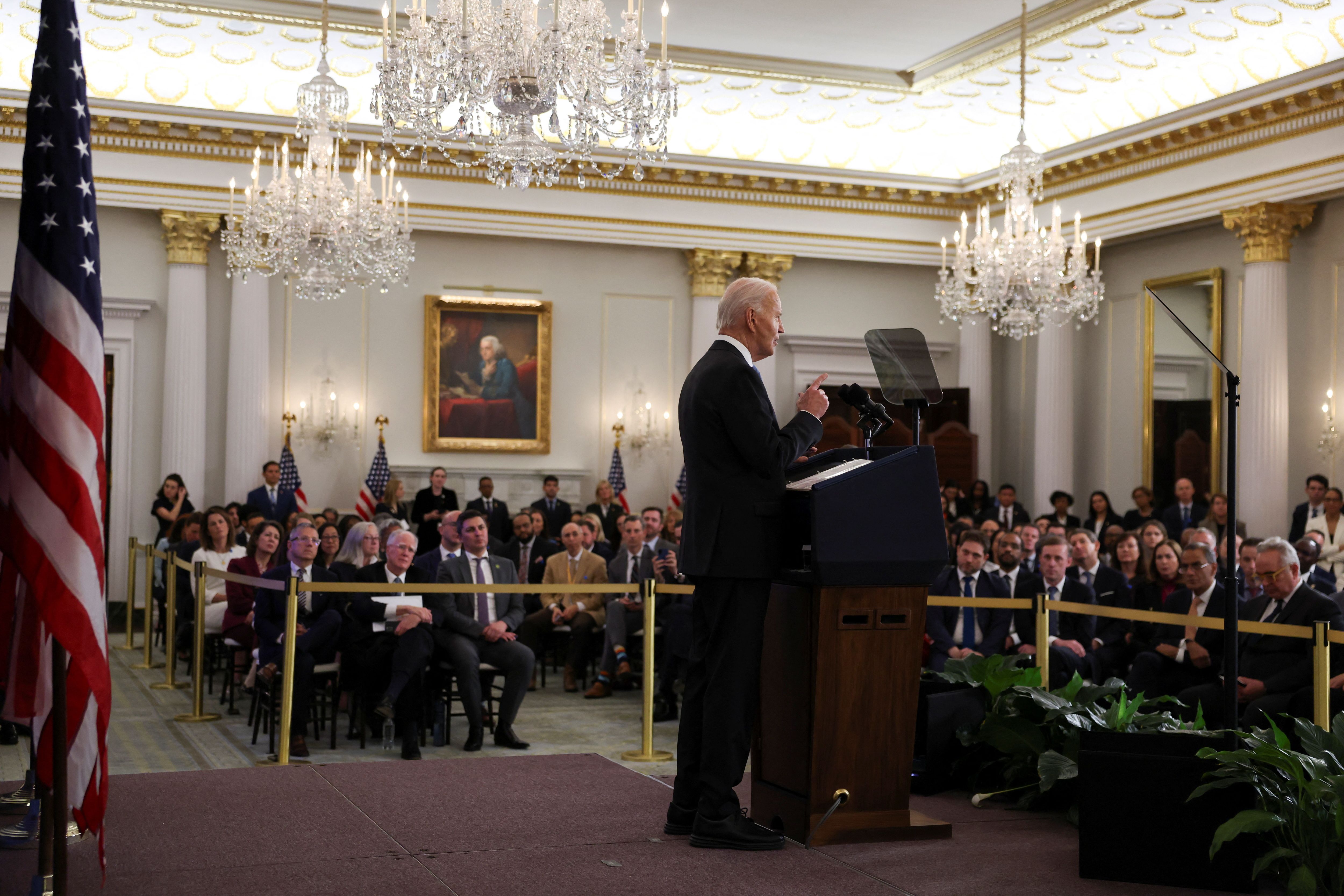 جو بایدن رییسجمهور آمریکا دوشنبه در سخنانی در وزارت خارجه این کشور اعلام کرد که توافق آتشبس غزه و آزادی گروگانها در آستانه تحقق است و دولت او به طور اضطراری در تلاش برای رسیدن به این توافق است.