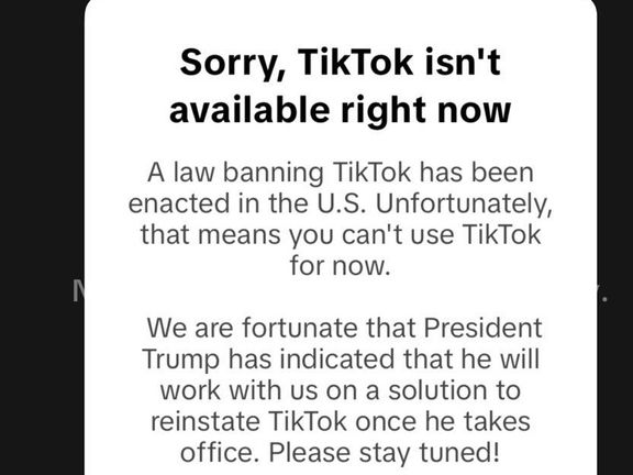 تیکتاک در پیامی به برخی کاربران در آمریکا گفته است «خوشبختانه» ترامپ ابراز تمایل کرده است که پس از آغاز به کار دولتش برای احیای خدمات تیکتاک با این شرکت همکاری کند.
