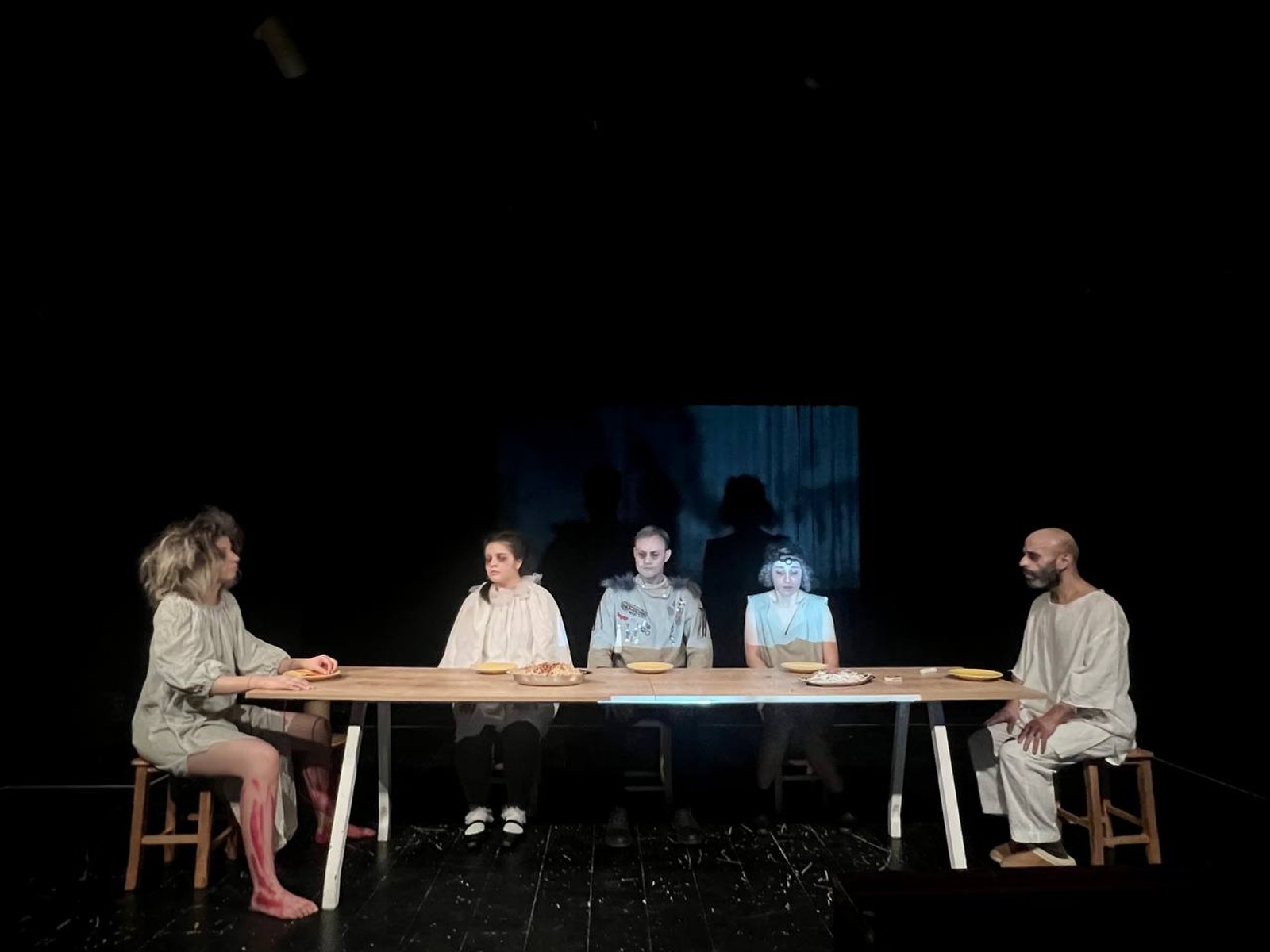 طراحی صحنه مینیمال نیز کاملا در خدمت مفهوم نمادین نمایشنامه است. میز ناهارخوری بزرگ و چوبی که بخش عمده صحنه را به خود اختصاص داده است، مرکزیت قدرت و کنترل در خانواده را نشان می‌دهد. در نگاه اول، این میز نقطه محوری تعاملات خانوادگی است، اما به‌واسطه چهارپایه‌هایی که نقشی کلیدی در بازی بازیگران دارند، حس ناپایداری و شکنندگی این روابط نیز به چشم می‌آید.