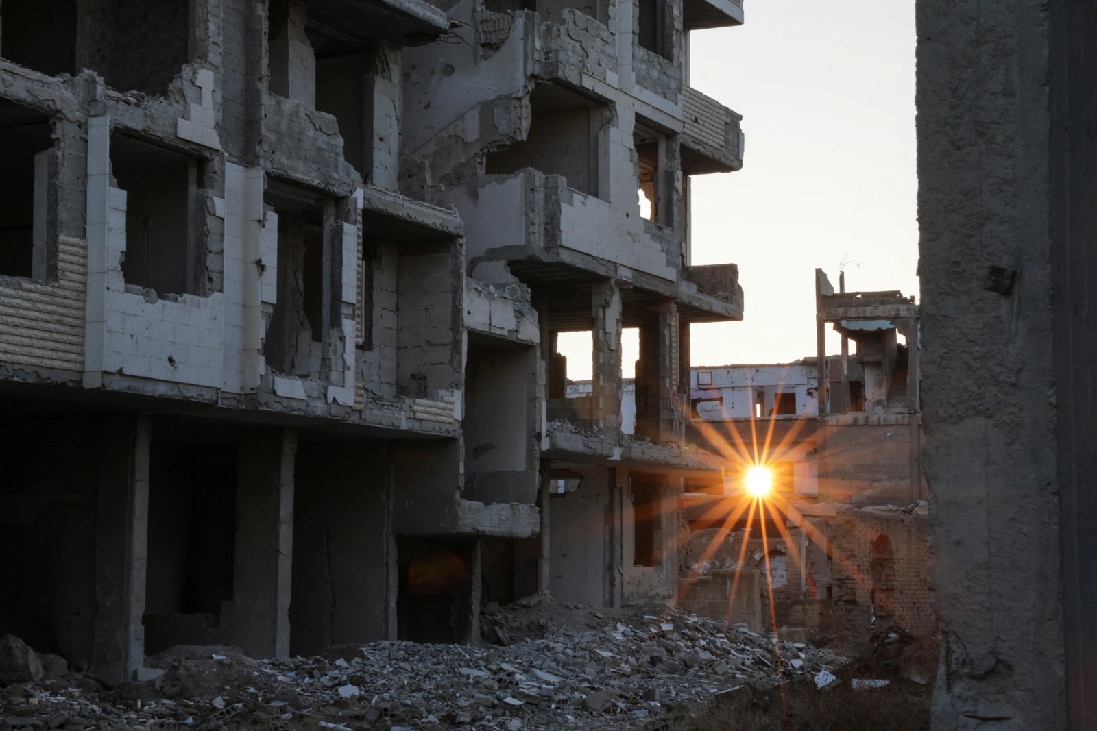 نمایی از ویرانیهای به جا مانده از درگیریها در حومه دمشق، ۱۴ دی