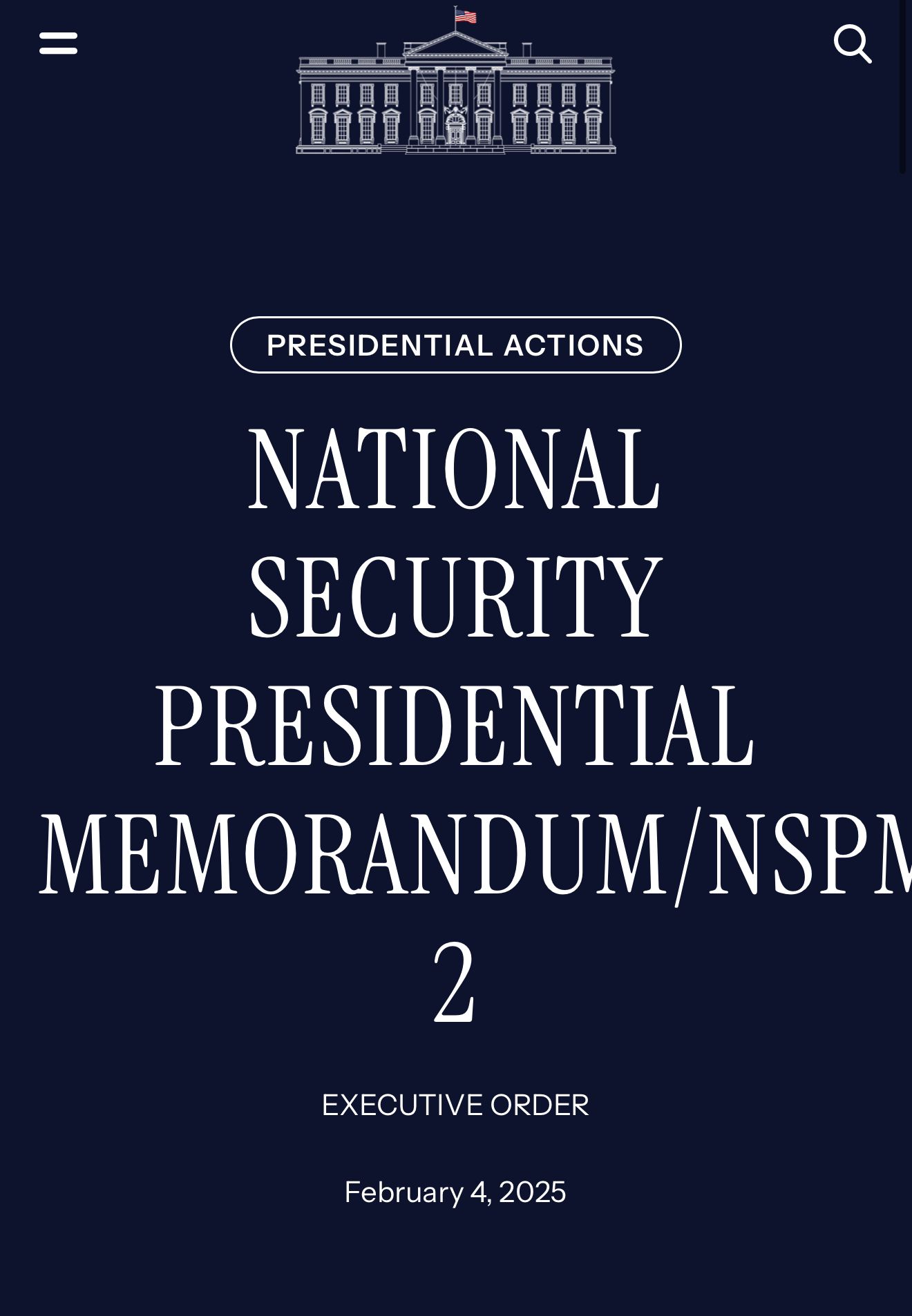 او سهشنبه ۱۶ بهمن و اندکی قبل از دیدار با بنیامین نتانیاهو، نخستوزیر اسرائیل در کاخ سفید، این دستورالعمل را امضا کرد و گفت «امیدوارم نیازی به استفاده از این گزینه نباشد، باید دید آیا میتوانیم به توافقی با ایران برسیم یا نه.»