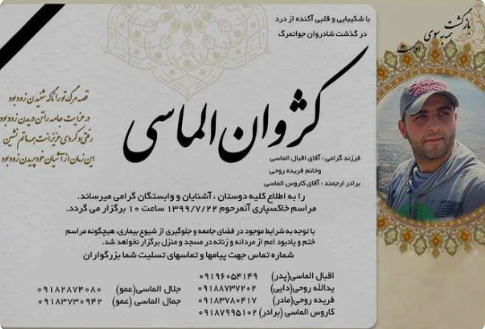 کاروس الماسی، برادر کژوان، به ایران اینترنشنال گفت قتل برادر او اگرچه به دست ماموران انتظامی امنیتی انجام شد، اما ربطی به مراسم استاد شجریان ندارد.