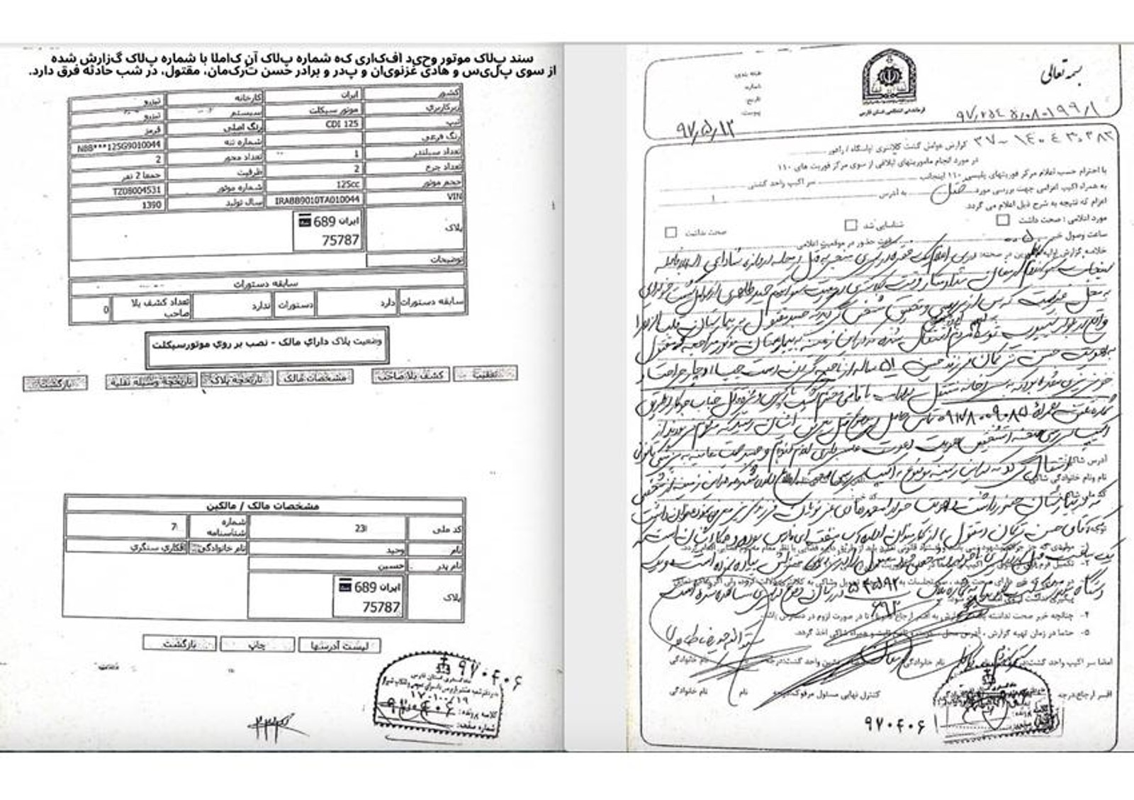 اما برای نمونه می‌توان به این اشاره کرد که در گزارش پلیس از صحنه قتل و علاوه بر این در شکایت اولیه برادر، همسر و پدر حسن ترکمان، شماره پلاک موتوری که به عنوان موتور ضاربان اعلام شده است با شماره پلاک موتور وحید افکاری تفاوت دارد و مالک آن هم شناسایی شده است اما پس از بازجویی مختصری آزاد شده است.