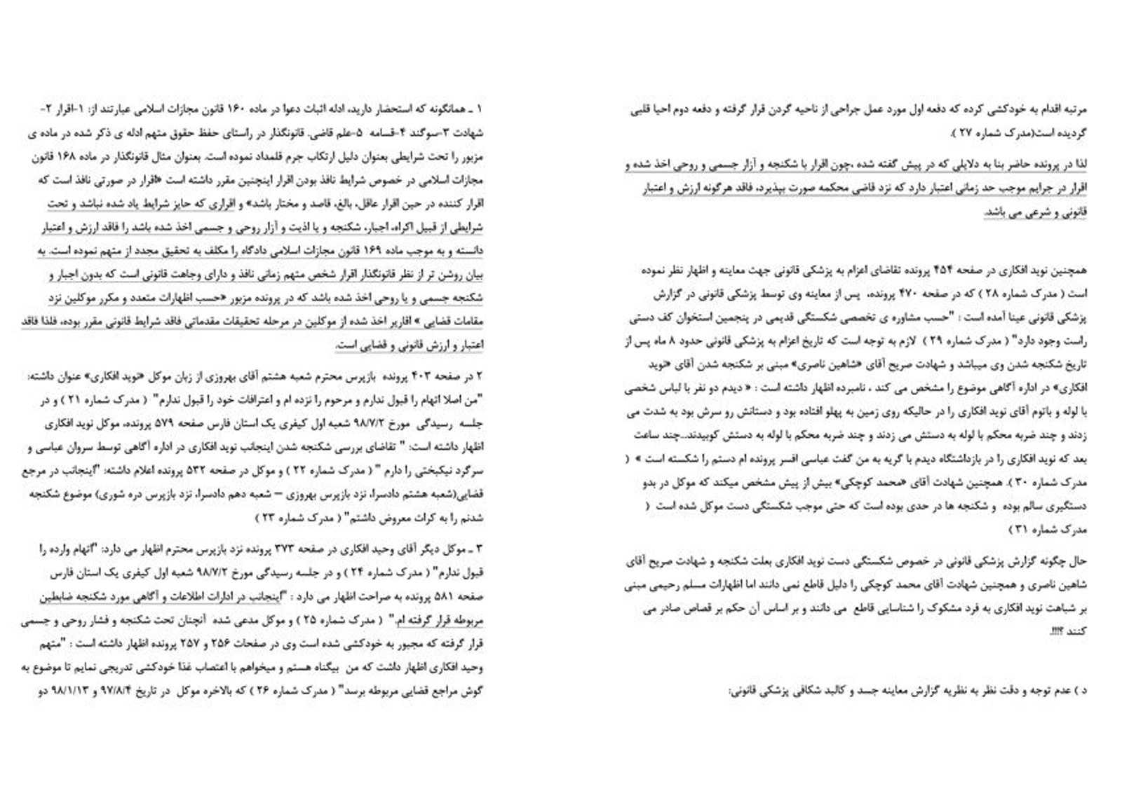 تفصیل این شواهد و مستندات در لایحه وکیل وحید و نوید افکاری برای درخواست اعاده دادرسی در دیوان عالی کشور آمده است.
