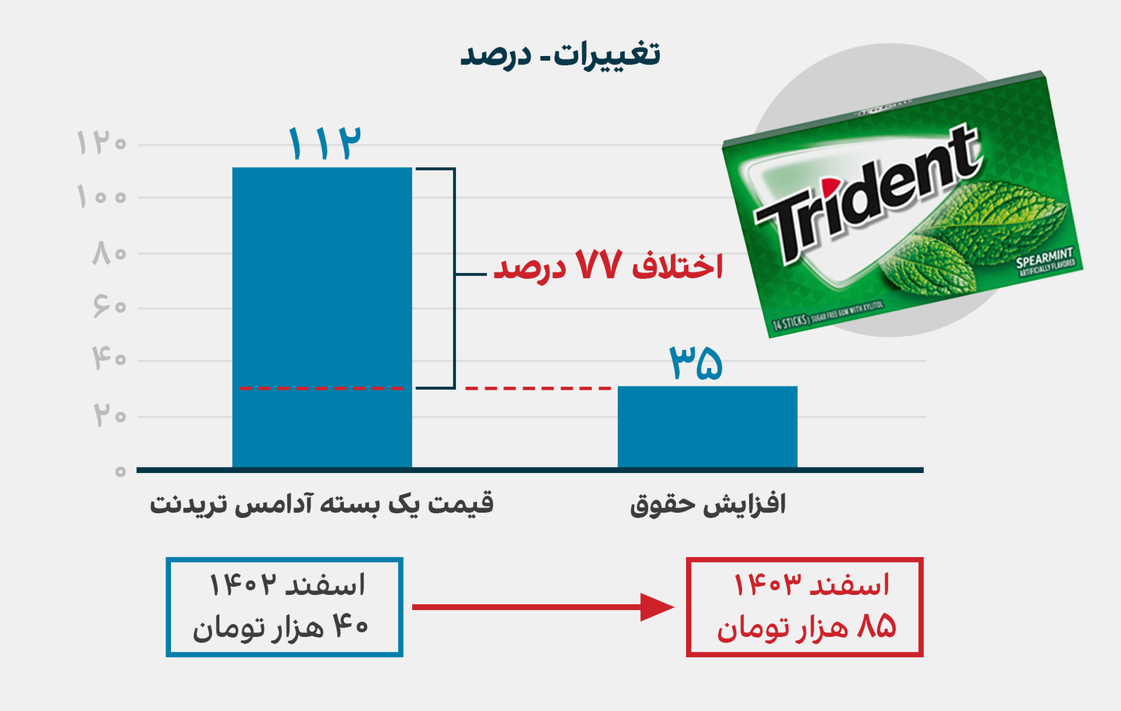 یک بسته آدامس تریدنت که سال گذشته ۴۰ هزار تومان بود، اکنون ۸۵ هزار تومان قیمت دارد.