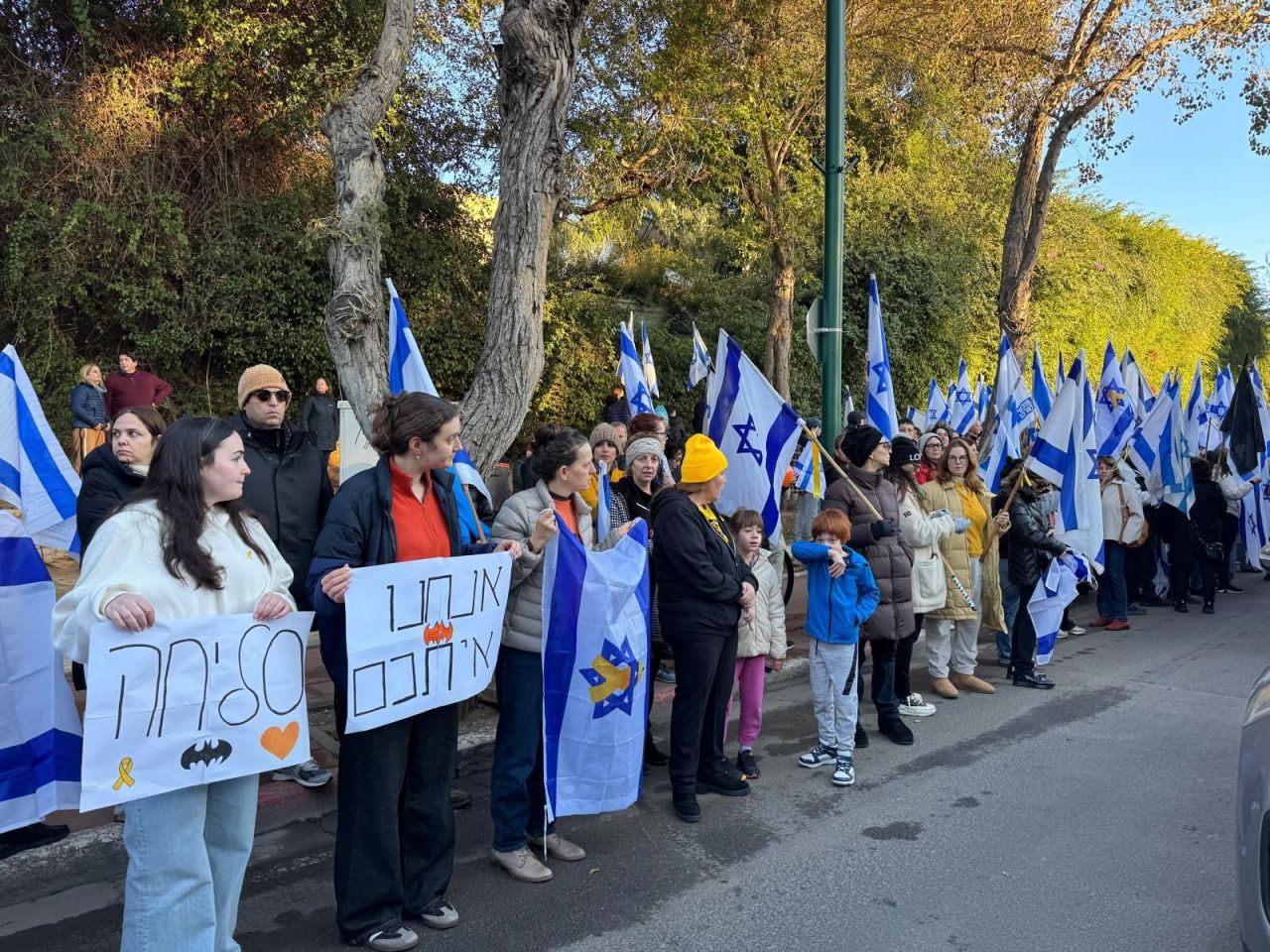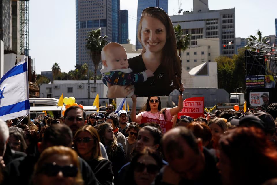 شماری از اسرائیلیها در پلاکاردهای قرمز رنگ خود، دولت را از مقصران مرگ گروگانها خواندند و بنیامین نتانیاهو، نخستوزیر را اینطور خطاب قرار دادند: «توافق را همین حالا نهایی کنید! آنها را به خانه بازگردانید!»