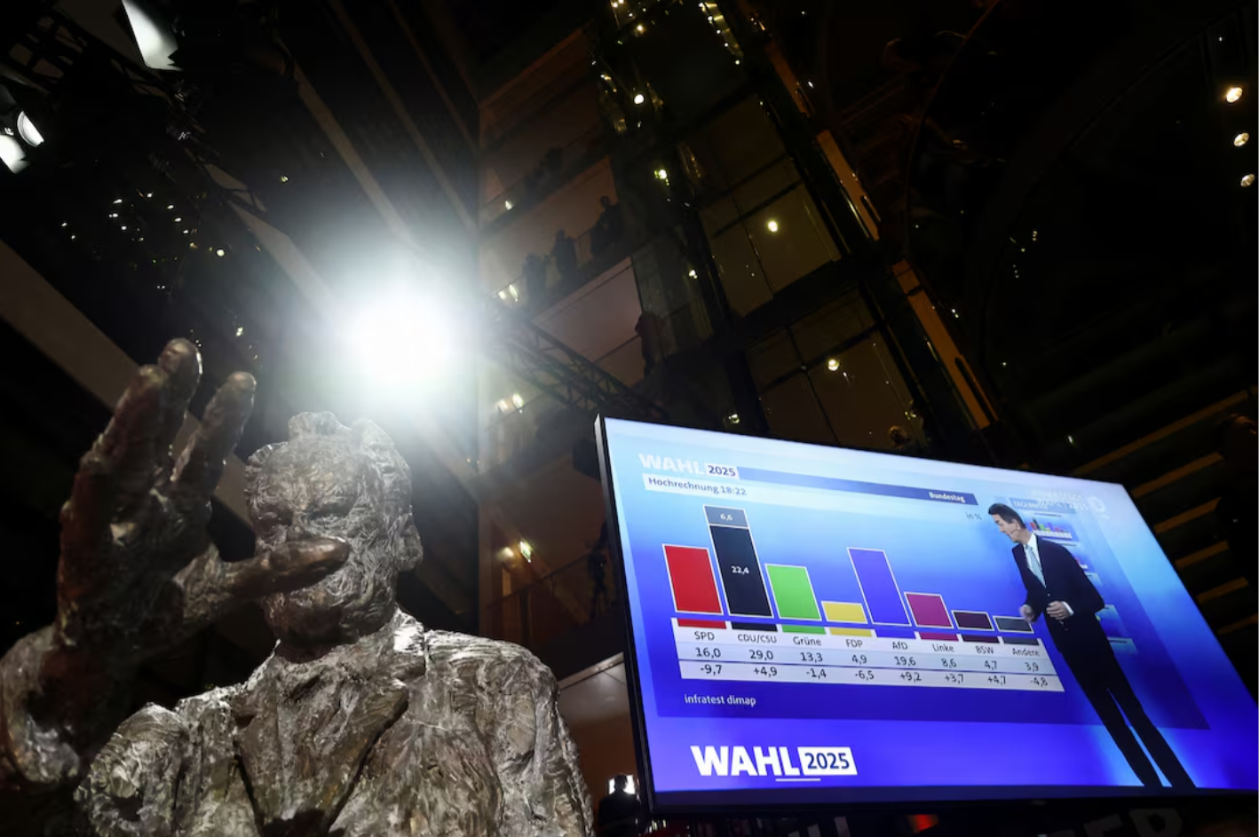 در همین حال، حزب راست افراطی آلترناتیو برای آلمان با کسب ۲۰.۸ درصد آرا بهترین نتیجهی تاریخ خود را ثبت کرد و به دومین حزب بزرگ در بوندستاگ تبدیل شد.