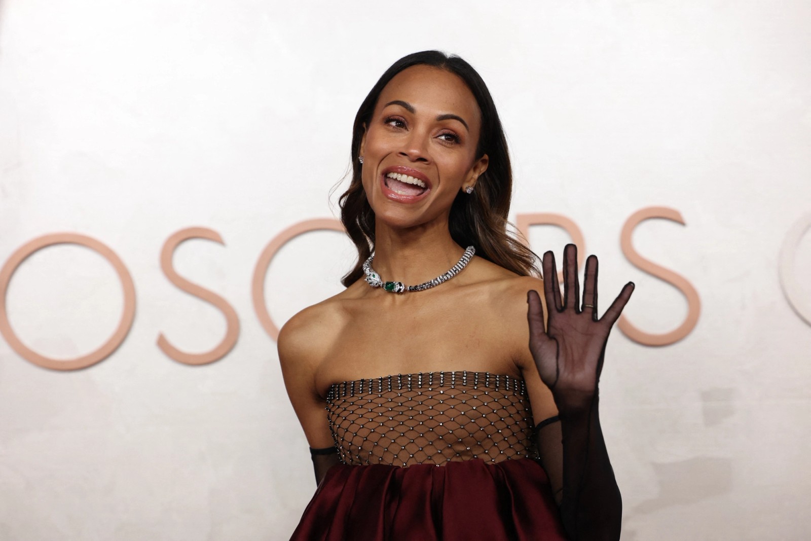 زوئی سالدانا هنگام ورود به مراسم اسکار
