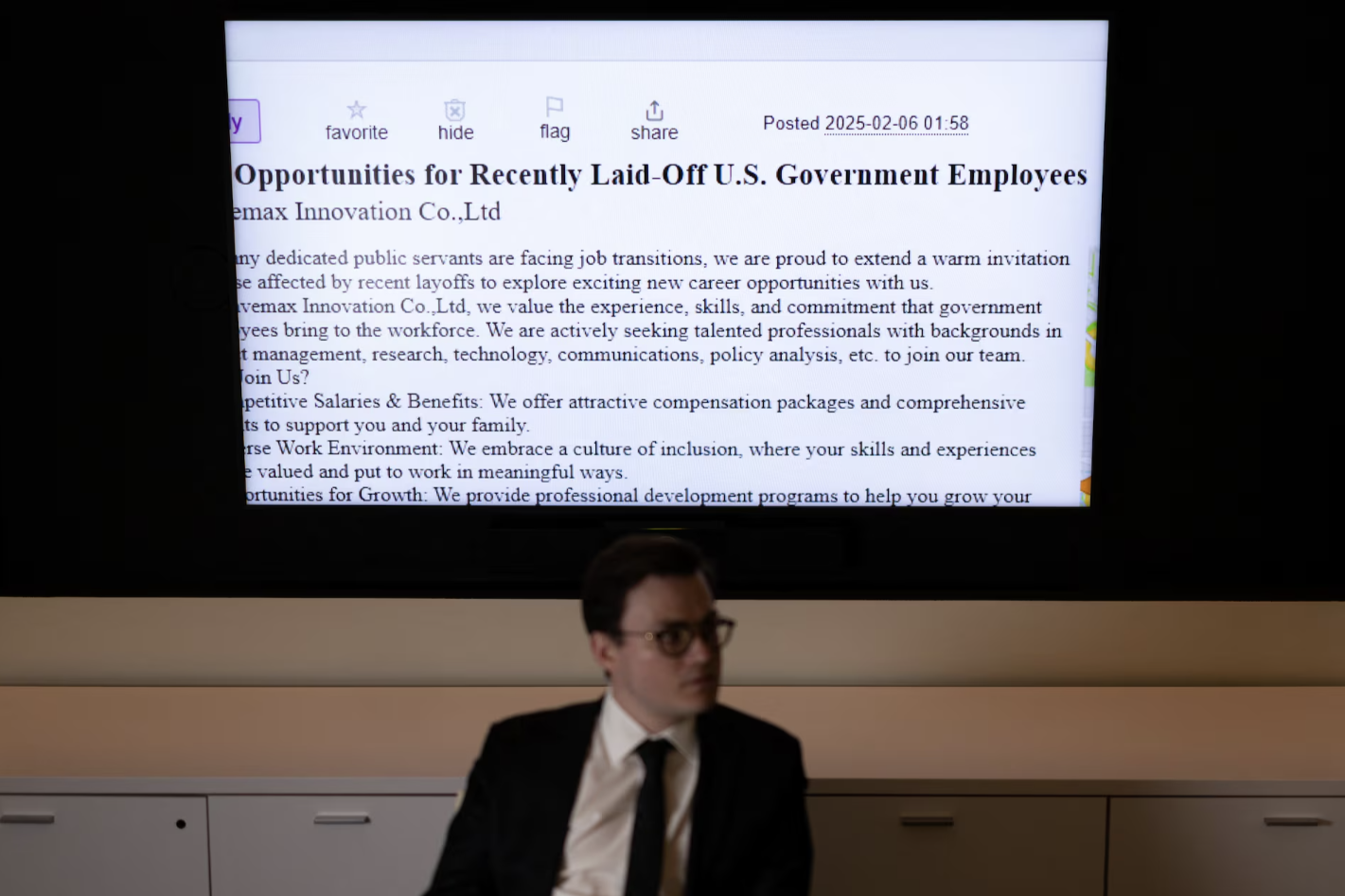 لسر که این شبکه را کشف کرده به رویترز گفت «آنچه این فعالیت را قابل توجه میکند این است که این شبکه به دنبال سواستفاده از آسیبپذیریهای مالی کارگران سابق فدرال است که تحت تاثیر اخراج های گسترده اخیر قرار گرفتهاند.»