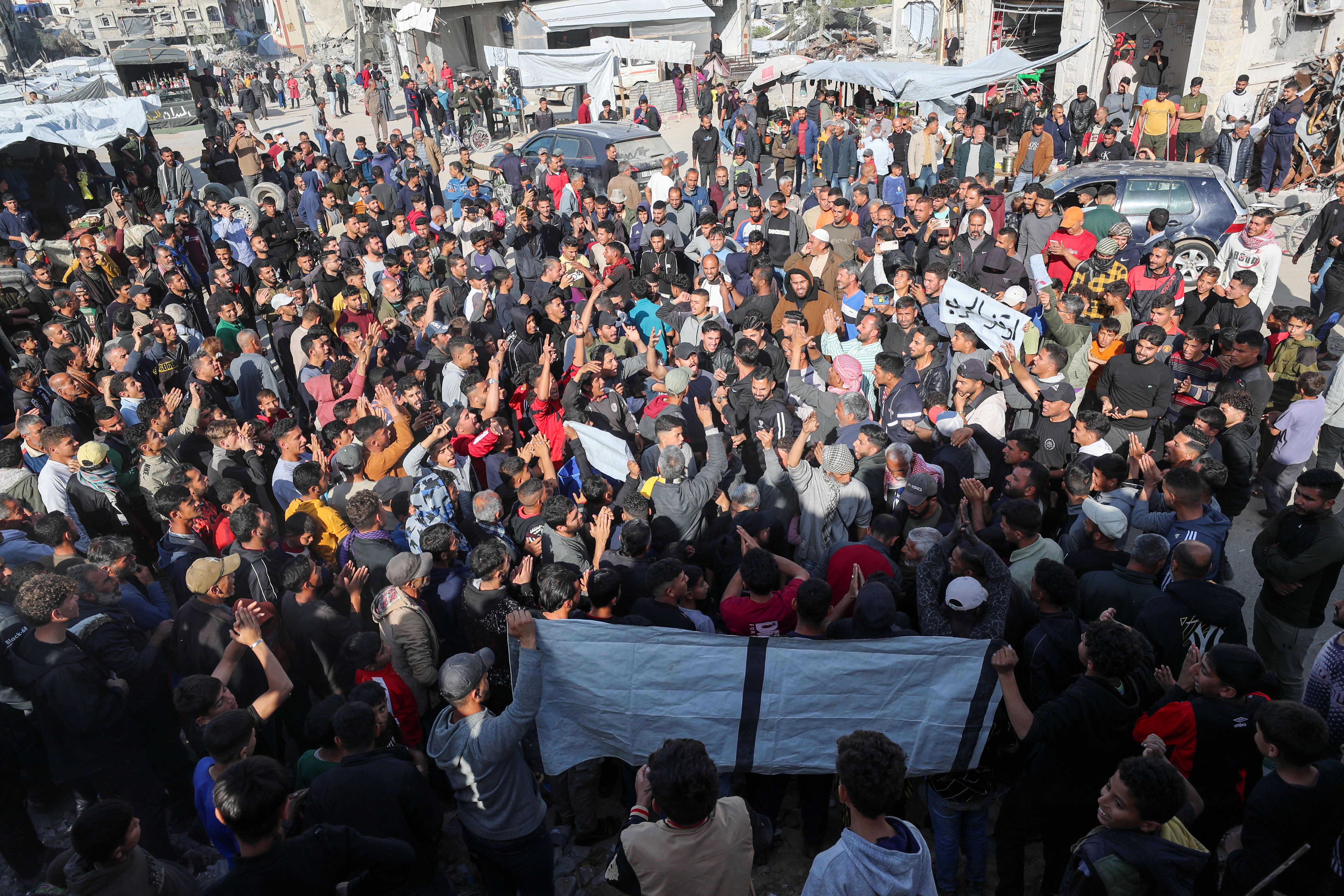 اما برخی معترضان که با رویترز صحبت کردهاند، گفتهاند که برای اعتراض به ادامه جنگ به خیابانها آمدهاند و از کمبود شدید مواد غذایی و آب رنج میبرند.
