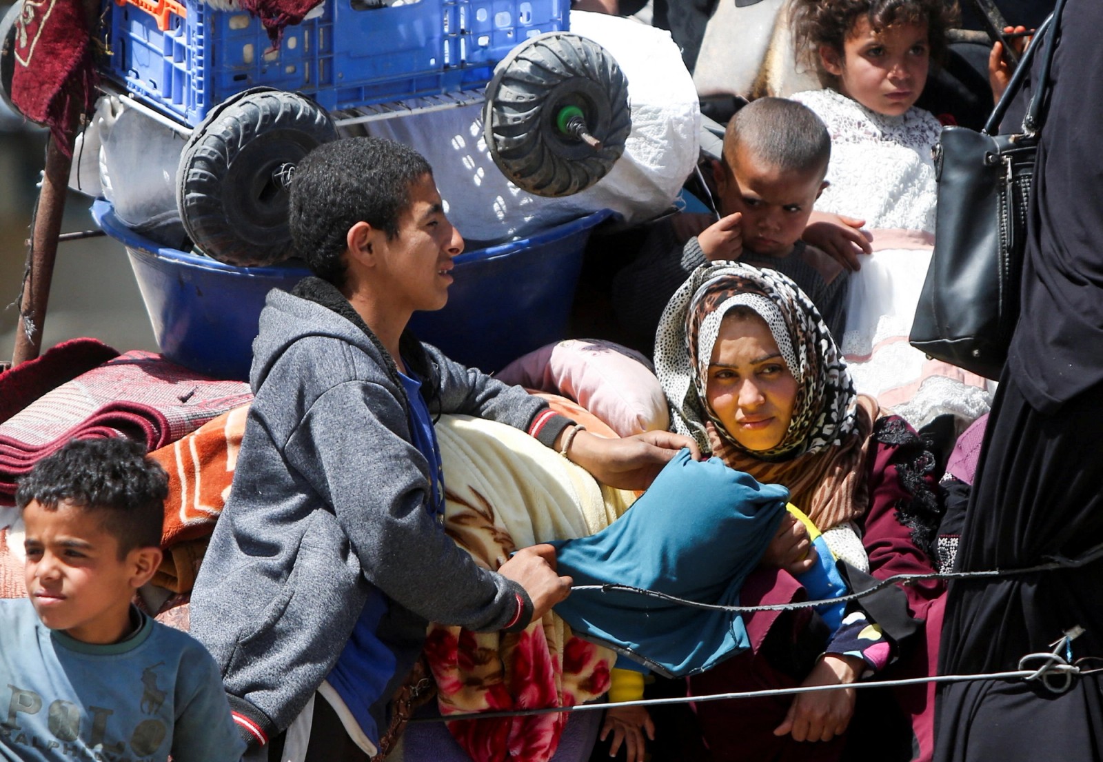فلسطینیان در حال گریختن از رفح در جنوب غزه برای در امان ماندن از درگیری‌ها، ۱۱ فروردین