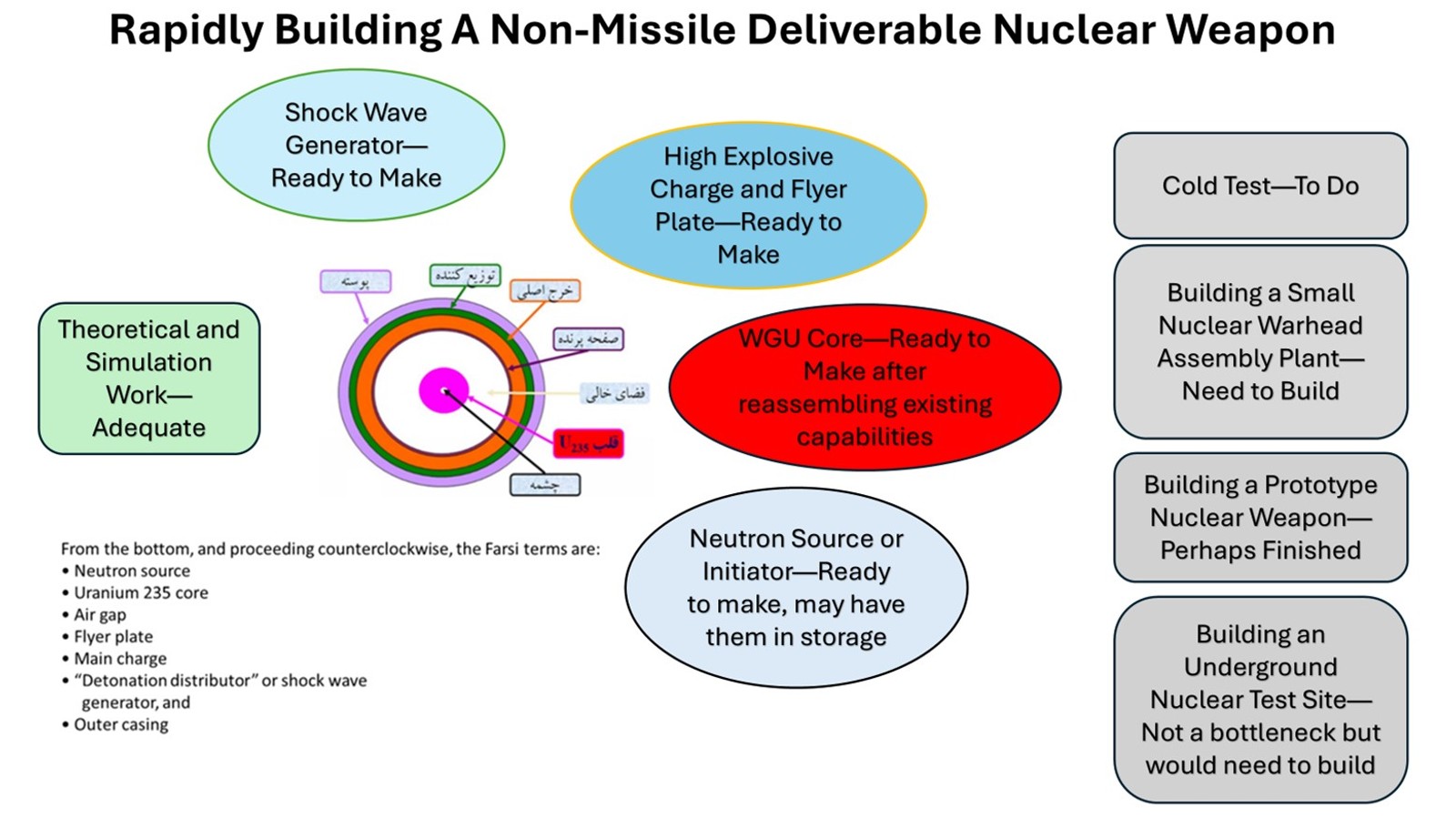 بهگفته موسسه علوم و امنیت بینالملل، «درگیریهای نظامی جاری در خاورمیانه، که جمهوری اسلامی و نیروهای نیابتیاش را در برابر اسرائیل و متحدانش قرار داده است و حکومت ایران در آن متحمل شکست شده، احتمال تصمیم تهران برای ساخت سلاح هستهای را افزایش داده است. این وضعیت ناپایدار امنیتی اکنون با این تصور ـ اگر نگوییم با این واقعیت ـ همراه شده که حکومت ایران در حال آمادهسازی خود برای ساخت سلاح هستهای است.»