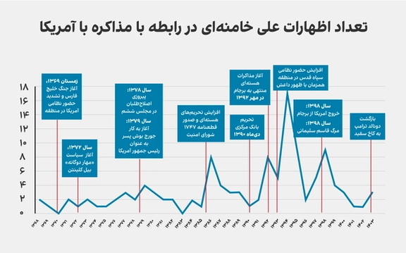 بررسی روند گروههای صفت آمریکاییها در مذاکرات و پیشبینی و اظهار نظر درباره نتایج، نشان میدهد که نگاه رهبر جمهوری اسلامی در دورههای مذاکره مانند ۱۳۹۲و ۱۳۹۴ و تنشهای شدید مانند ۱۳۹۸ منفیتر میشود.
