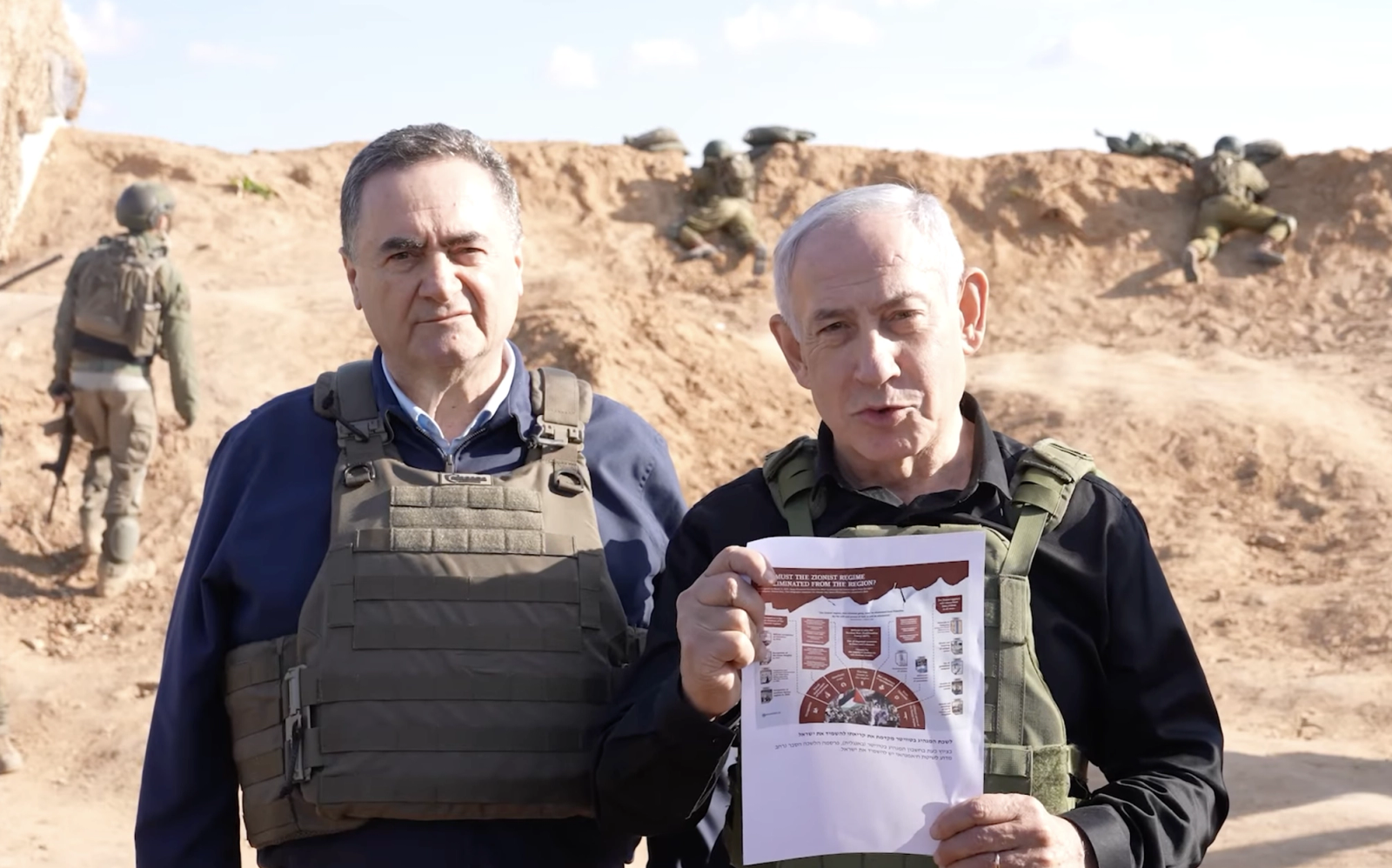 بنیامین نتانیاهو، نخستوزیر اسرائیل، سهشنبه ۲۶ فروردین در جریان بازدید از شمال نوار غزه با اشاره به پوستر منتشرشده در وبسایت علی خامنهای گفت: «رهبر ایران در حالی که با آمریکاییها مذاکره میکند، تصویری منتشر میکند که در آن توضیح داده شده چرا اسرائیل باید نابود شود.»