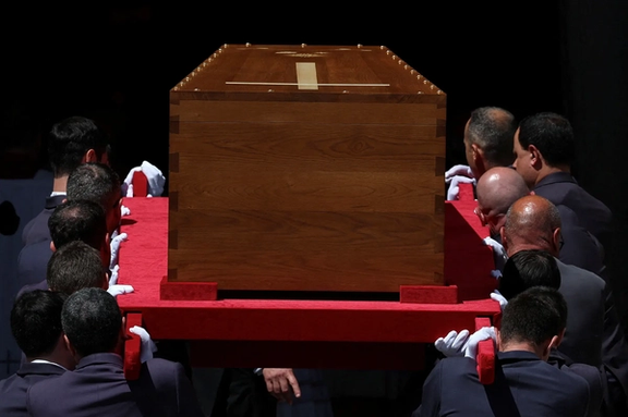 به گزارش گاوین جونز، شبکههای تلویزیونی ایتالیا تنها تصاویر گروه کر در داخل کلیسای سنتا ماریا ماجوره را پخش میکنند و مراسم خاکسپاری که به صورت کاملا خصوصی انجام میشود، به نمایش گذاشته نمیشود.
