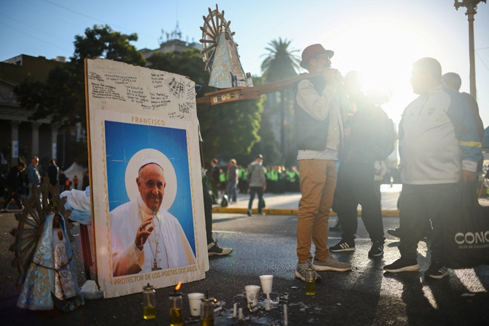 بوئنوس آیرس، آرژانتین – مردم در کنار تصویری از پاپ میایستند.