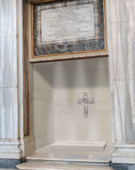 آرامگاه پاپ فرانسیس در کلیسای سنتا ماریا ماجوره از موادی ساخته شده که از منطقه لیگوریا در ایتالیا آمدهاند. آرامگاهی ساده که تنها نام «فرانسیس» و تصویر صلیب سینه پاپ فقید بر روی آن حک شده است.
