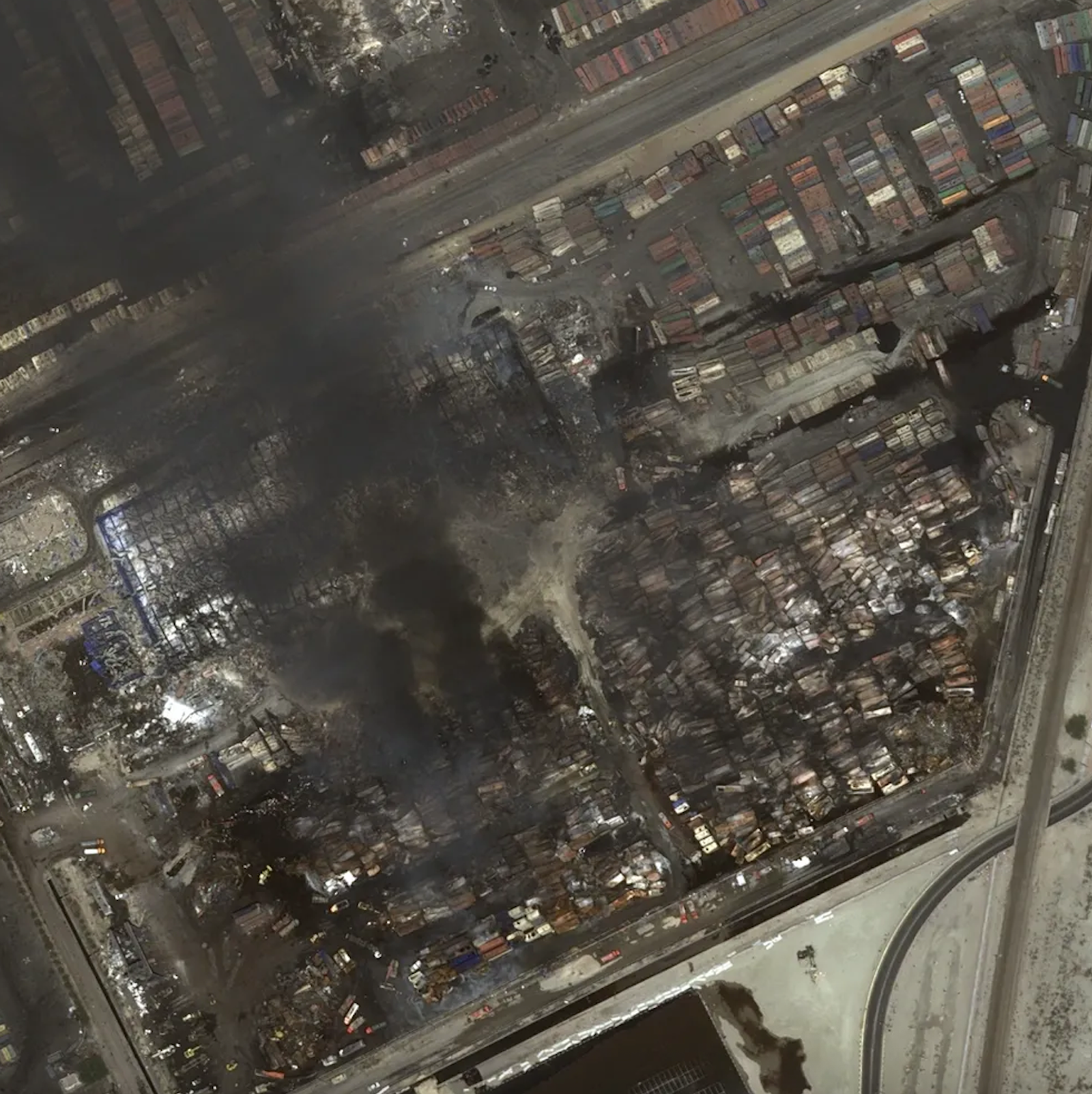 در تصاویر ماهوارهای شدت تخریب از مچالهشدن شمار بسیار زیادی از کانتینرها در دو طرف گودال انفجار قابل مشاهده است.