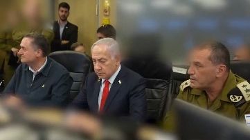 دفتر نخستوزیری اسرائیل تصاویری منتشر کرد که در آن بنیامین نتانیاهو، همراه با وزیر دفاع و رییس ستاد ارتش اسرائیل در یک پناهگاه نیروی هوایی این کشور بر روند حملهها به حوثیها نظارت دارند.