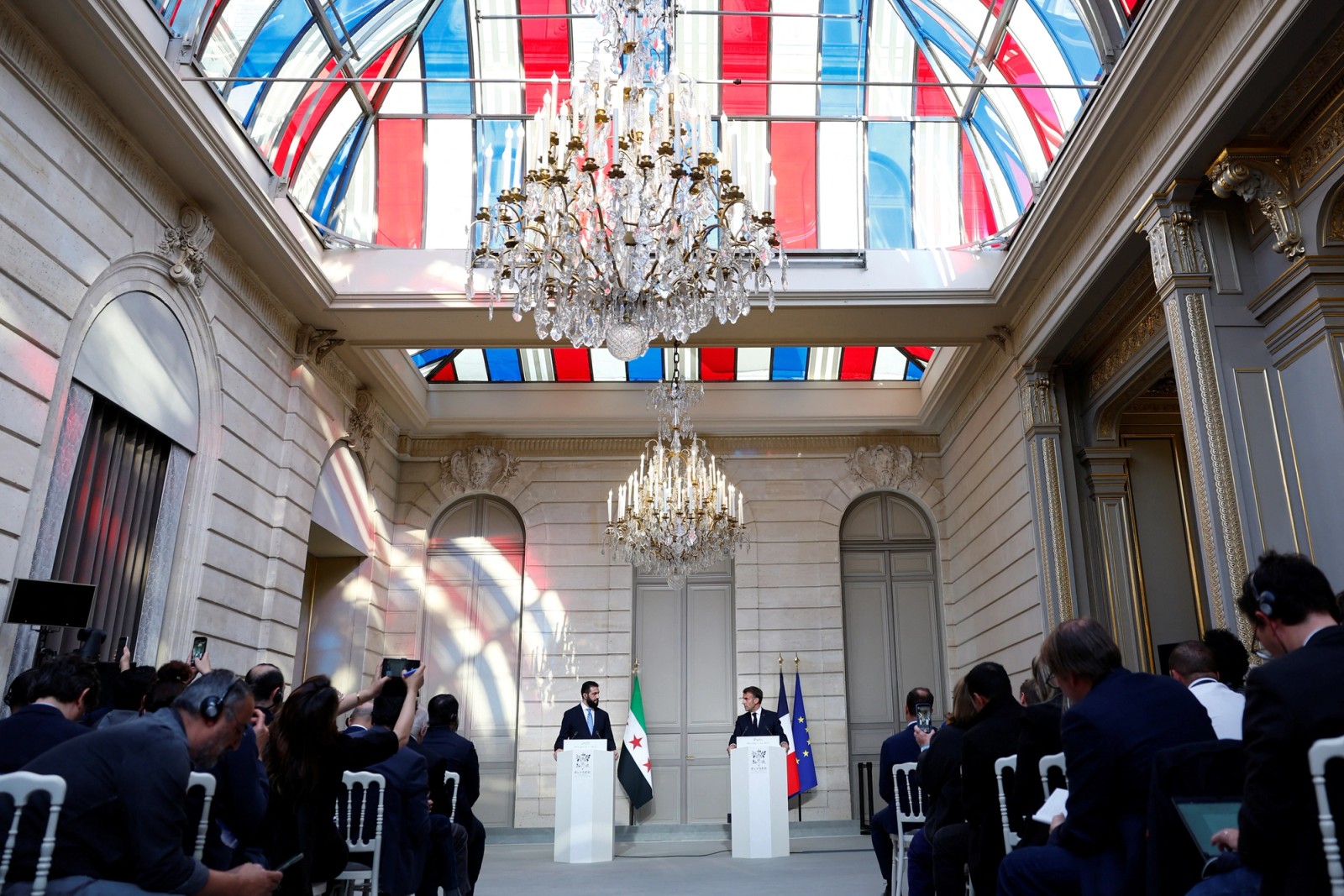 در جریان سفر احمد الشرع، رییس دولت انتقالی سوریه به پاریس، امانوئل مکرون، رییس‌جمهوری فرانسه اعلام کرد در صورت تداوم مسیر دولت جدید سوریه، برای لغو تدریجی تحریم‌های اتحادیه اروپا تلاش خواهد کرد. نشانه‌ای از تغییر رویکرد فرانسه نسبت به حکومت تازه‌ روی کار آمده در دمشق.