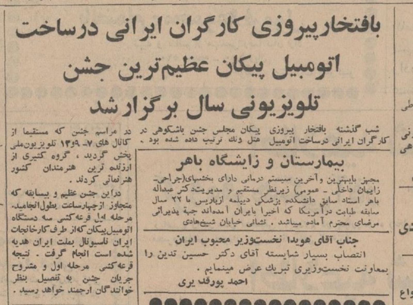 دی ۱۳۴۶، امیر کویت در سفر به ایران، از خط تولید پیکان دیدن کرد. در این دیدار خیامی از توان ایران‌ناسیونال برای تامین نیاز خاورمیانه خبر داد. / روزنامه اطلاعات ۲۳ دی ۱۳۴۶، صفحه ۱۷