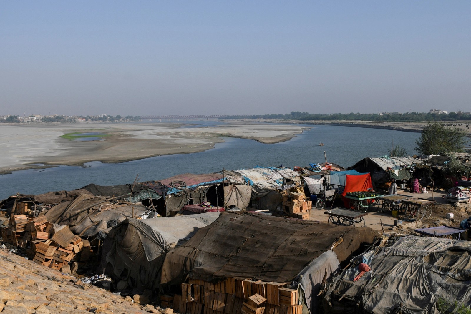 نمایی از چادرهای مسکونی مهاجران غیررسمی در بستر خشک رود سند در شهر حیدرآباد