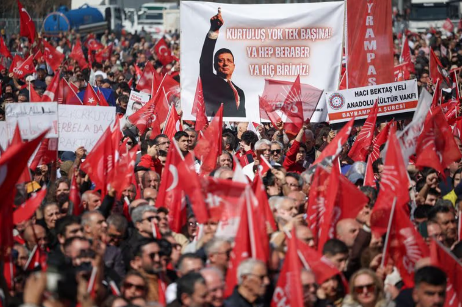 امام‌اوغلو، از چهره‌های برجسته اپوزیسیون ترکیه پیش از اعلام نامزدی در انتخابات ریاست‌جمهوری، به اتهام فساد مالی بازداشت شد. در واکنش به این بازداشت، ده‌ها هزار نفر بارها در استانبول گرد هم آمدند و دست به اعتراض زدند.