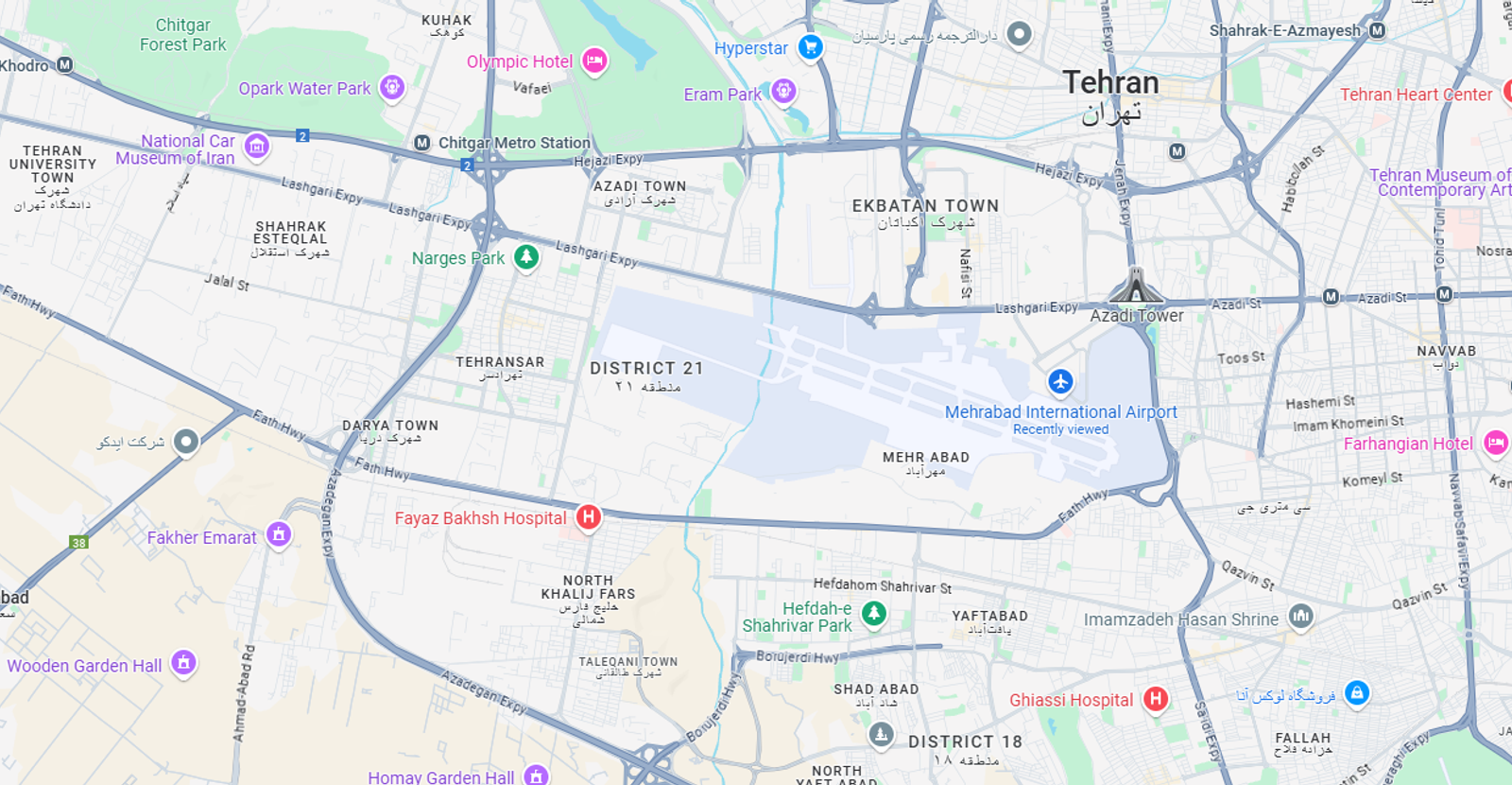 فرودگاه مهرآباد سال‌هاست که اطراف تهران نیست و از جنوب با یافت‌آباد، از شمال با اکباتان، از شرق با سی‌متری جی و شمشیری و از غرب با تهرانسر احاطه شده است؛ منطقه‌ای نسبتا پر رفت و آمد که بیابانی به‌معنای منطقه‌ای دورافتاده در آن وجود ندارد.