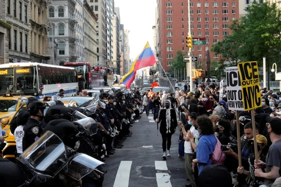 شماری از معترضان سهشنبه در نزدیکی دادگاه مهاجرت در ساختمان فدرال جیکوب جی. جاویتس در جنوب منهتن گرد هم آمدند و به سیاستهای اداره مهاجرت و گمرک آمریکا اعتراض کردند.