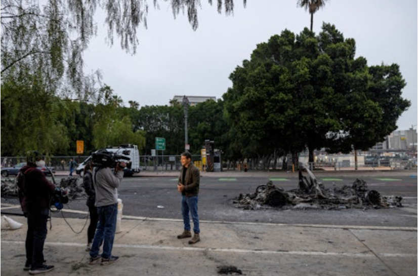 انجمن مطبوعات لسآنجلس میگوید از آغاز درگیریها در آخر هفته تاکنون، دستکم ۳۰ مورد خشونت پلیس علیه خبرنگاران ثبت شده است. مواردی که علاوه بر ضربوشتم، بازرسی اجباری تجهیزات و کیفهای خبری بدون رضایت را نیز در بر میگیرد.