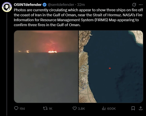 احتمال برخورد دو نفتکش در دریای عمان | ایران اینترنشنال