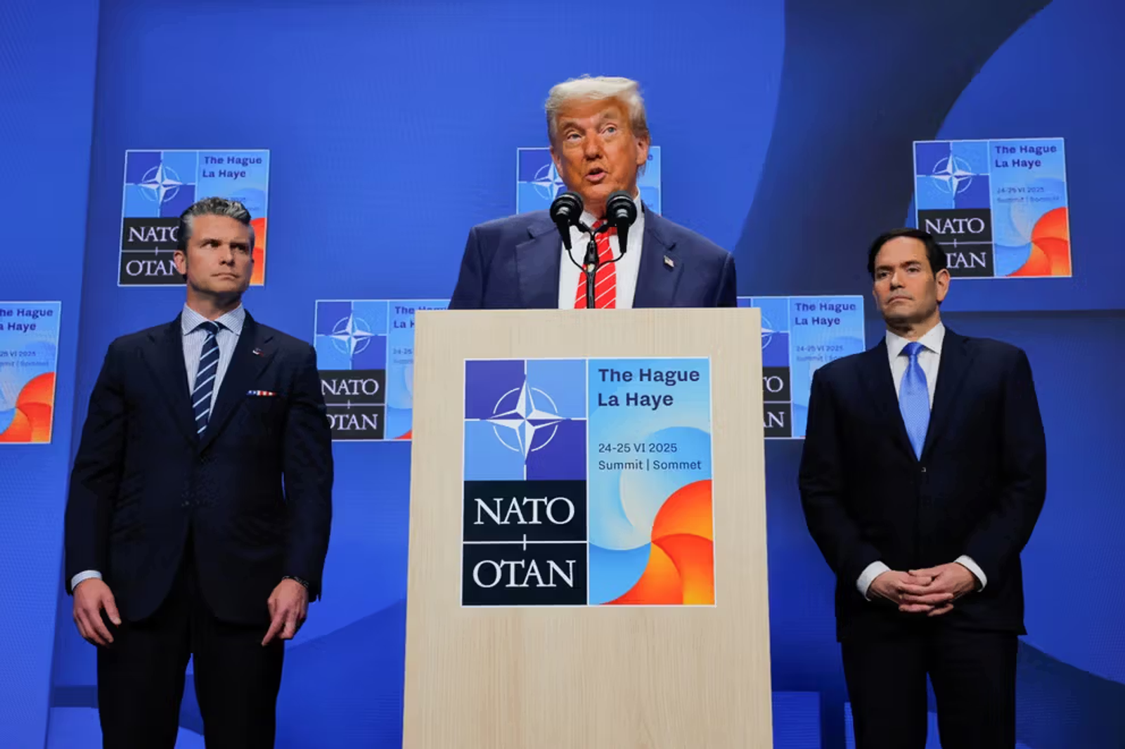 دونالد ترامپ در جریان کنفرانس مطبوعاتی پس از اجلاس ناتو در هلند، خطاب به مارکو روبیو، وزیر خارجه آمریکا، گفت: «می‌خواهی یک توافق‌نامه کوچک برایشان [جمهوری اسلامی] تنظیم کنی که امضا کنند؟ چون فکر می‌کنم می‌توانیم آنها را به امضای آن وادار کنیم.»