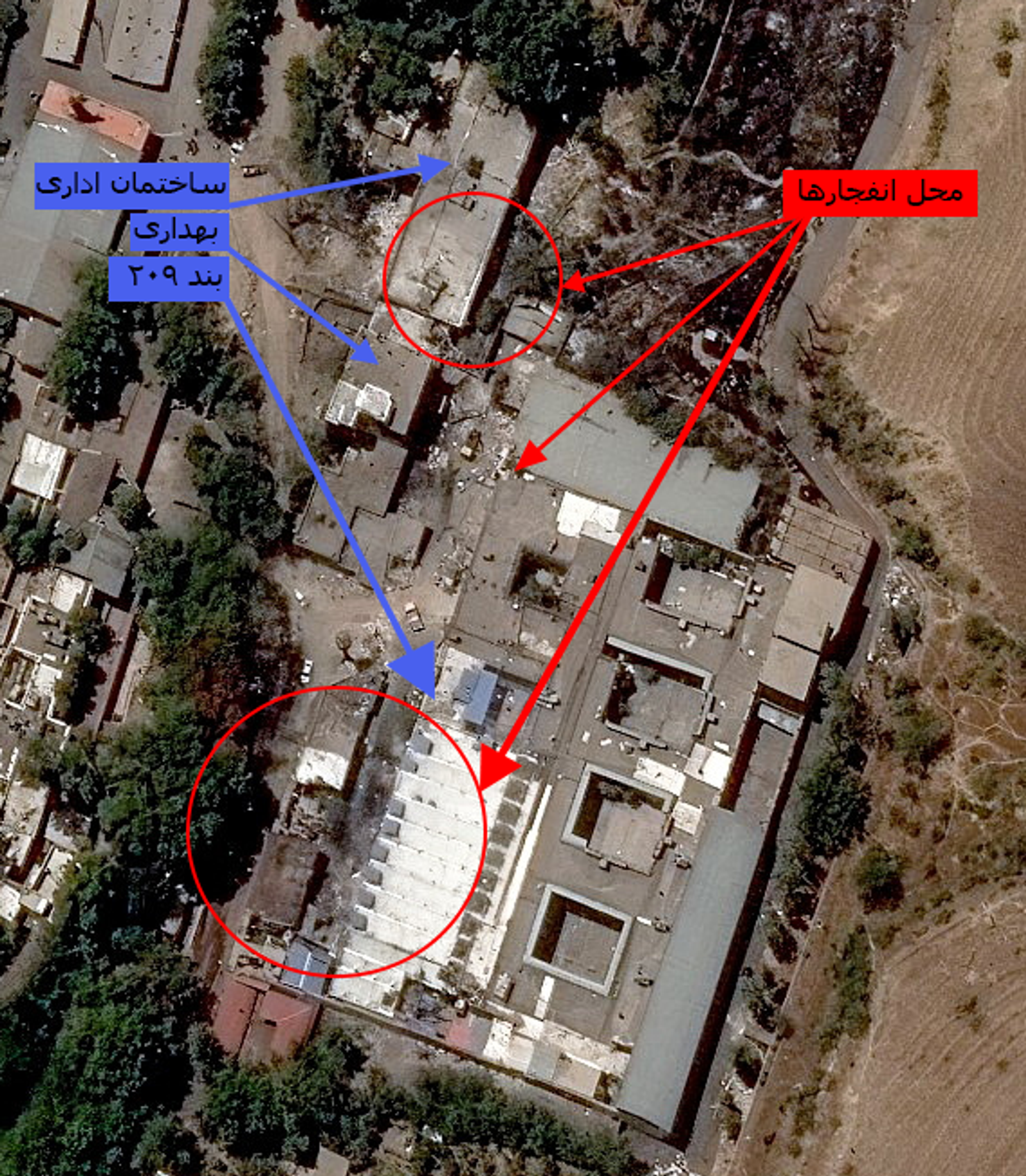 در تصاویر ماهواره‌ای دست‌کم اثر دو یا سه انفجار در محدوده بند ۲۰۹ دیده می‌شود، تخریب بخش بیرونی بند ۲۰۹ اوین در تصاویری که رسانه‌های داخلی منتشر کرده‌اند به وضوح قابل تشخیص است.