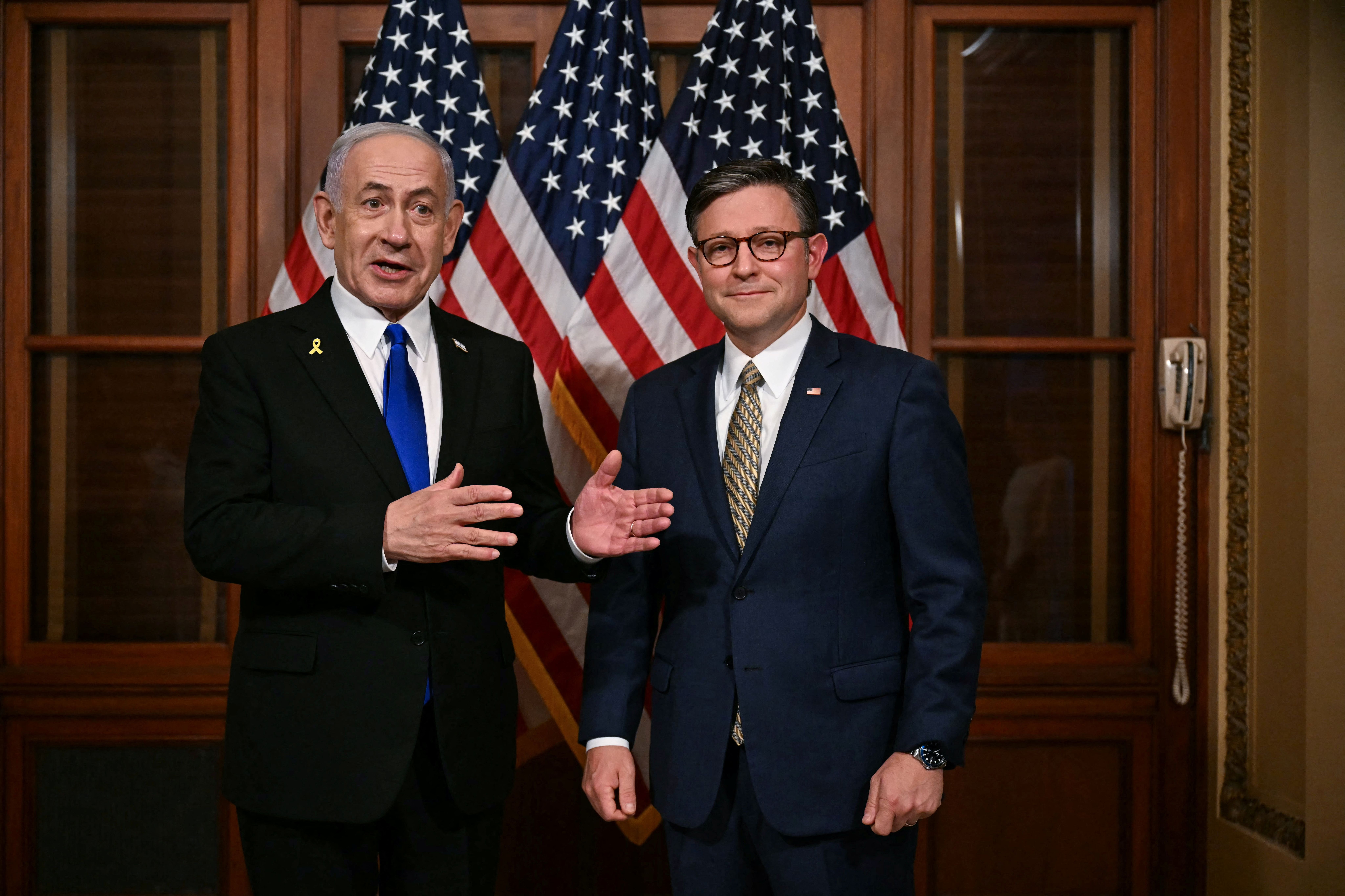 بنیامین نتانیاهو، نخستوزیر اسرائیل، دیدار خود را با مایک جانسون، رییس مجلس نمایندگان ایالات متحده، در ساختمان کنگره آمریکا آغاز کرد.
