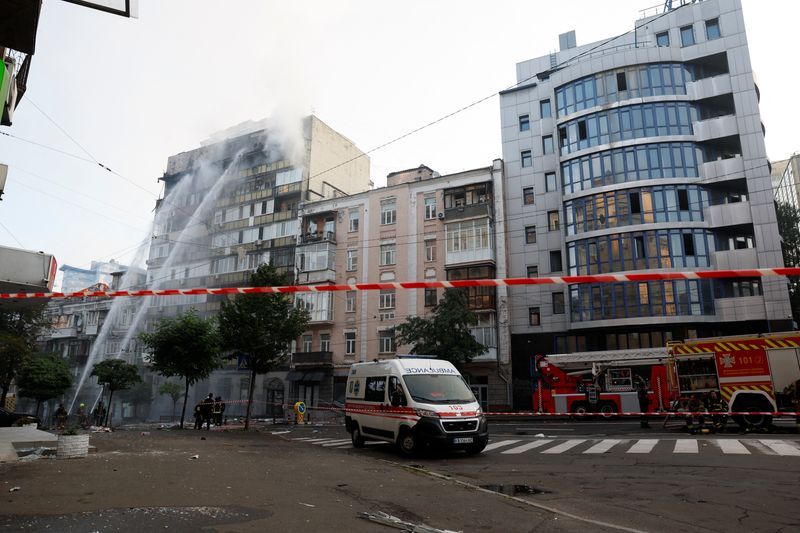 در ساعات اولیه بامداد پنج‌شنبه ۱۹ تیر، پهپادها و موشک‌های روسی به پایتخت اوکراین اصابت کردند.