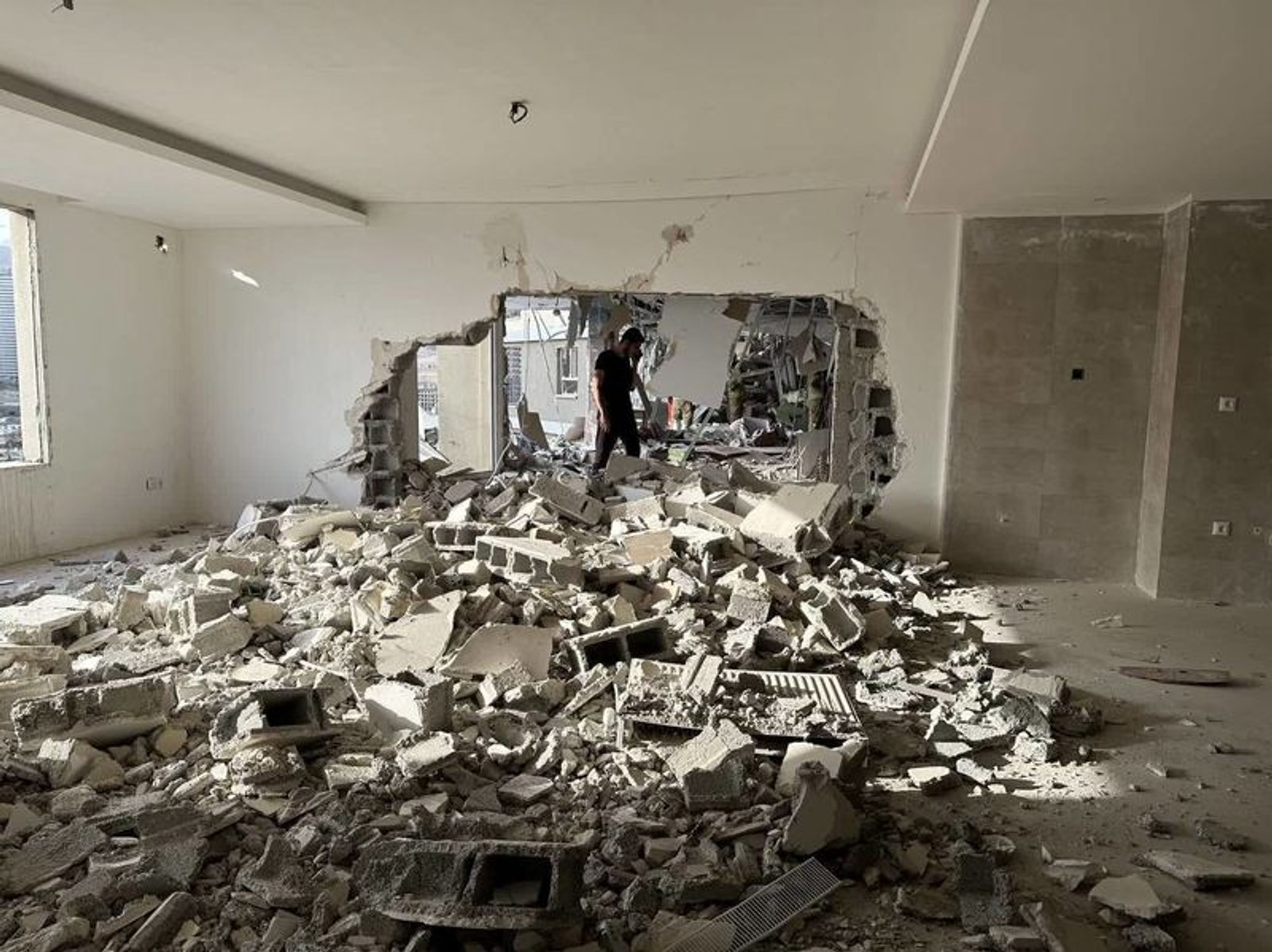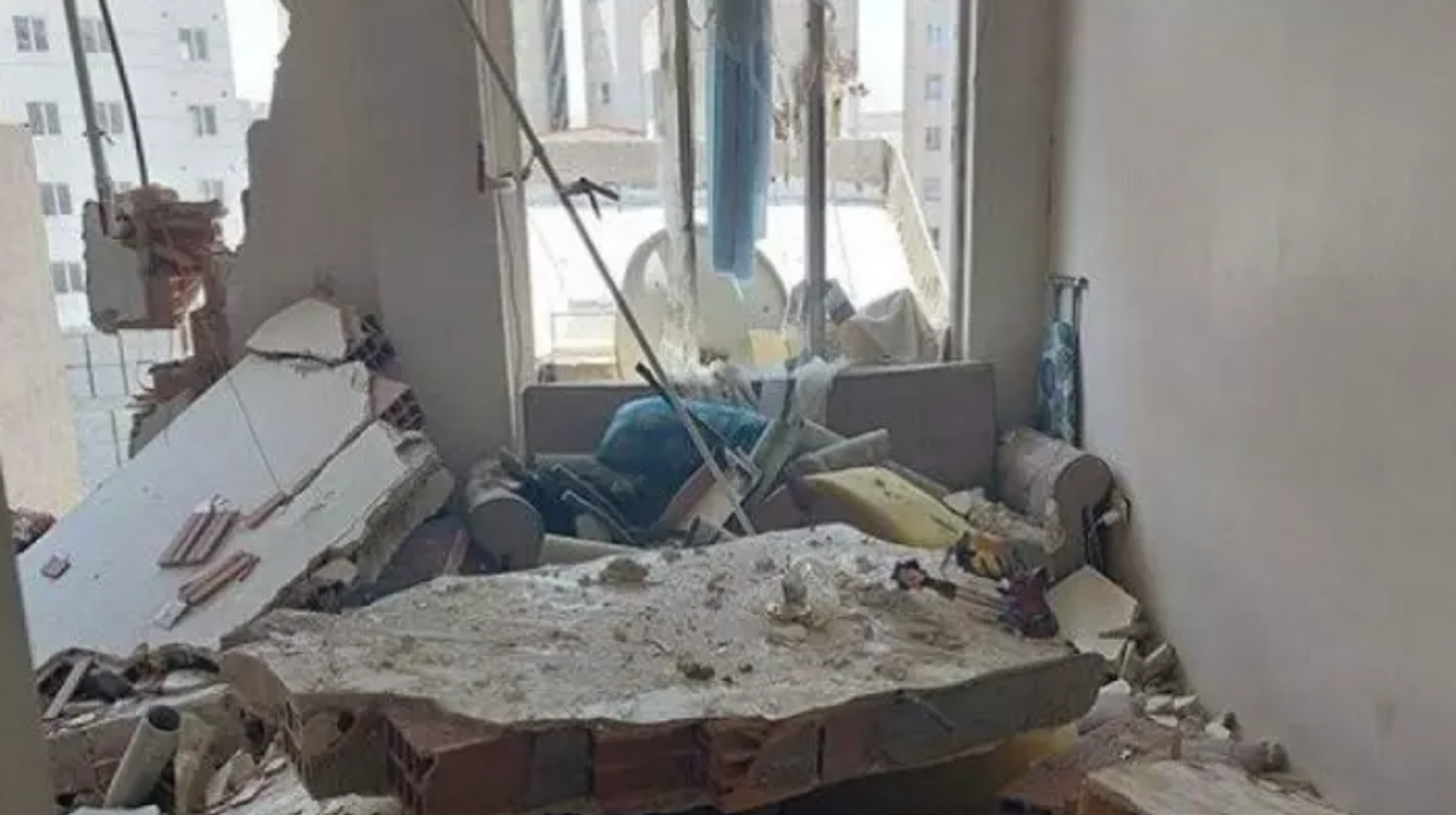 تصویری که خبرگزاری‌های رسمی ادعا کردند از داخل واحد منفجر شده در برج «پامچال ۹» تهیه کرده‌اند. هیچ اثاثیه‌ای در تصاویر به چشم نمی‌خورد