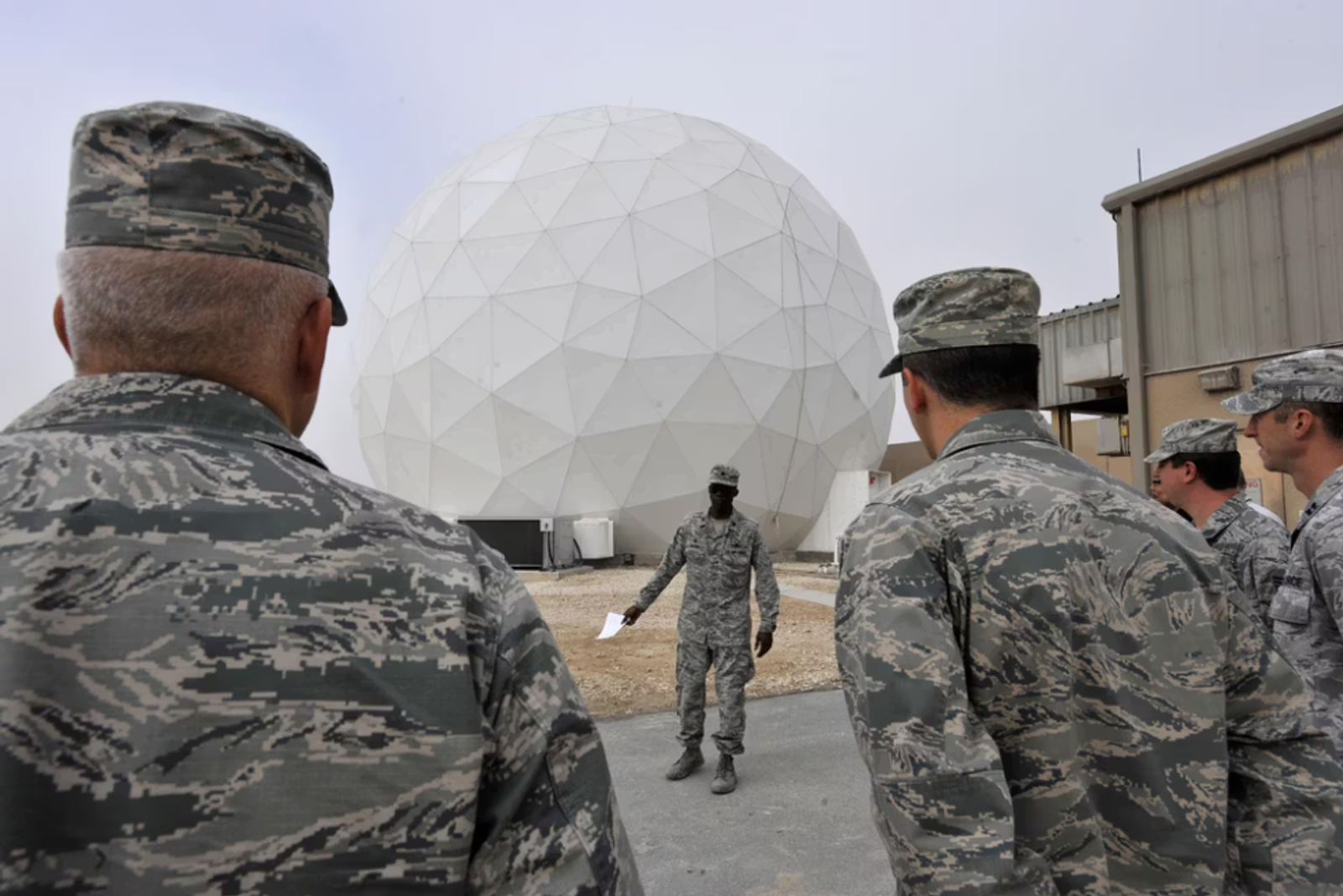 ترمینال مدرن‌شده سازمانی (MET) درون یک گنبد راداری (رادوم) در پایگاه هوایی العدید قطر، ۲۱ ژانویه ۲۰۱۶، در این عکس آرشیوی نیروی هوایی ایالات متحده دیده می‌شود.
