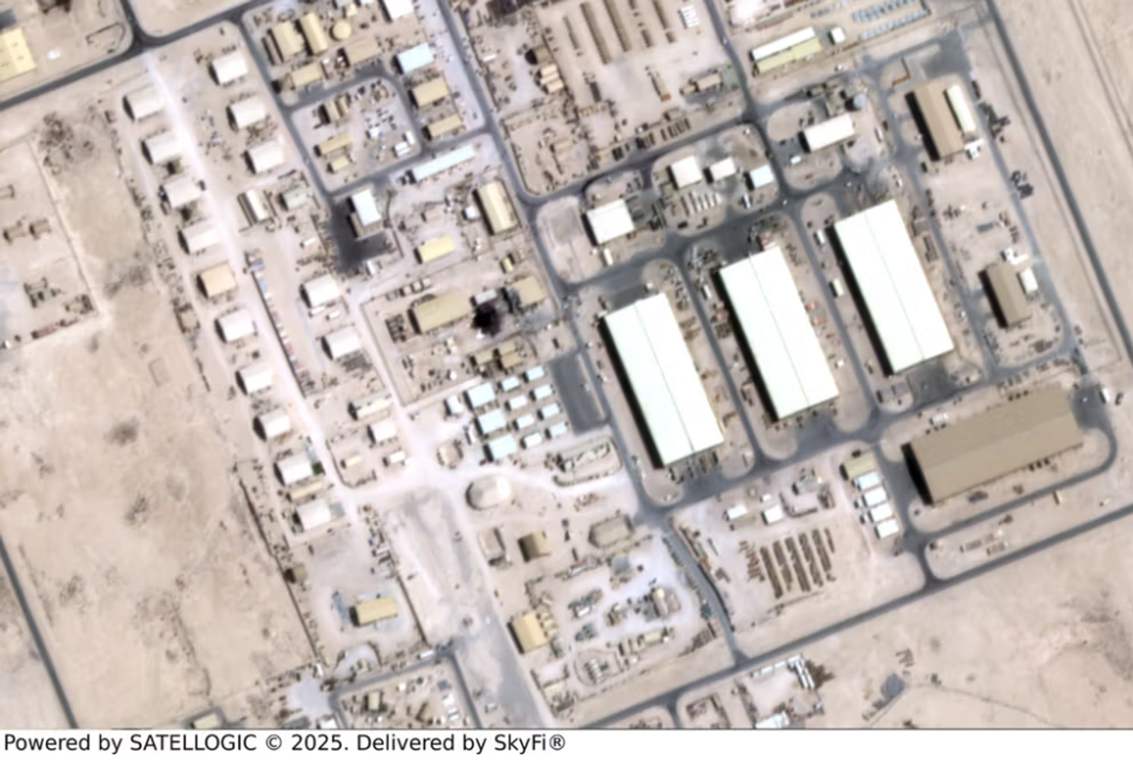 تصویر ماهواره‌ای ثبت‌شده در ۲۴ ژوئن توسط شرکت آمریکایی Satellogic که در اختیار ایران‌اینترنشنال قرار گرفته، به‌نظر می‌رسد نشان‌دهنده آسیب احتمالی به یک سایت ارتباطی حساس در داخل پایگاه هوایی آمریکا در العدید قطر باشد؛ پایگاهی که روز ۲۳ ژوئن هدف حمله ایران قرار گرفت. یک دایره قرمز نیز برای مشخص‌کردن ناحیه مورد نظر به تصویر افزوده شده است.