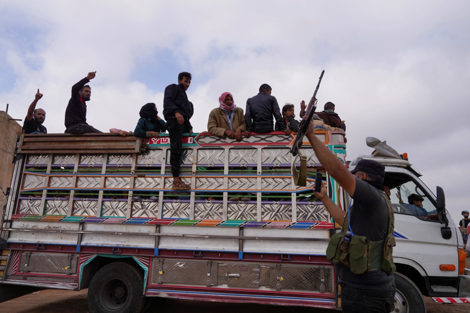 خانواده‌های بادیه‌نشین سوار بر وسیله نقلیه، روستای المزرعه را ترک می‌کنند